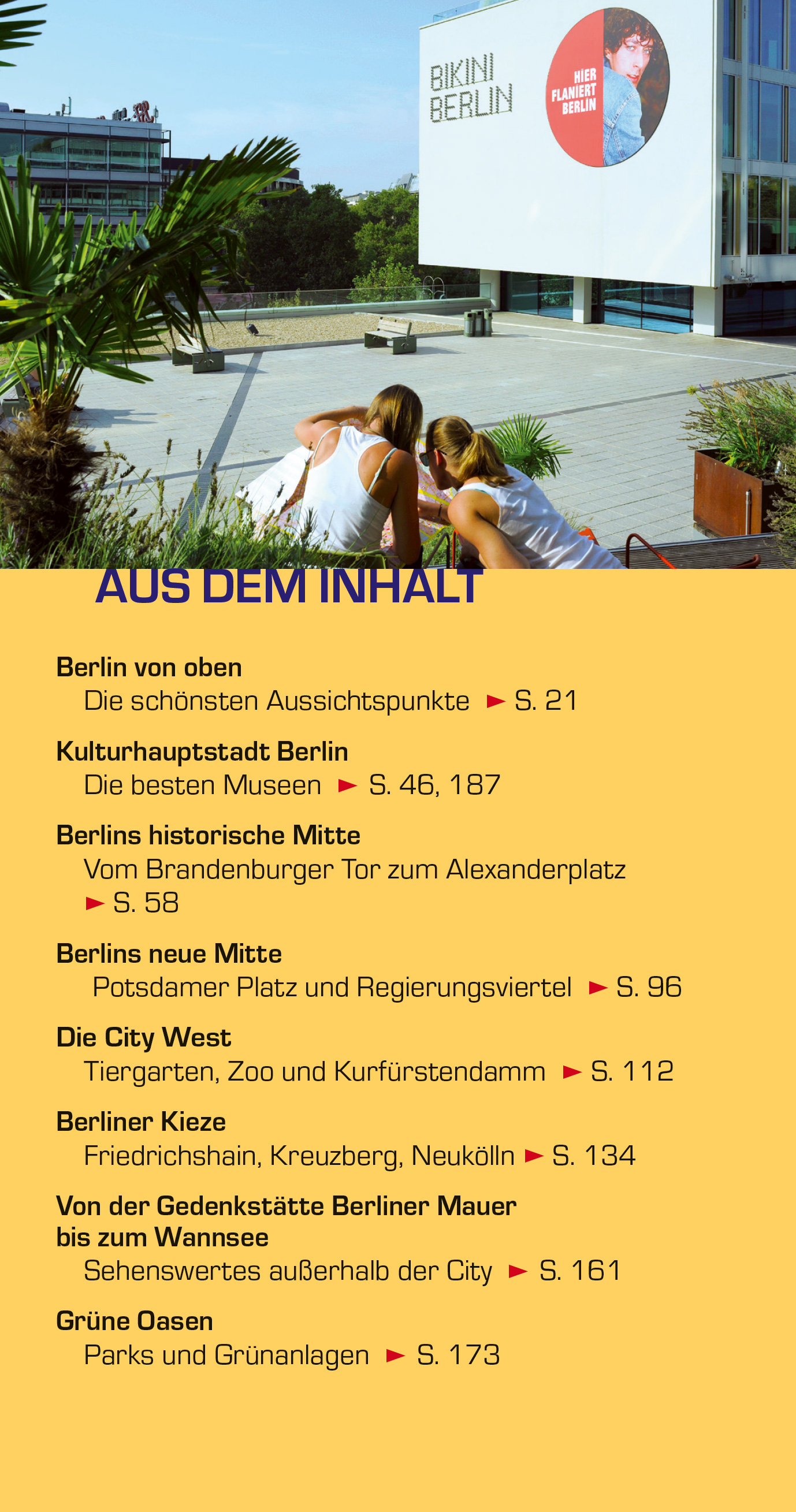 VORWORT »Berlin ist mehr ein Weltteil als eine Stadt«. Dieses Zitat des Schriftstellers Jean Paul ist mehr als 200 Jahre alt – und es erscheint heute so aktuell wie eh und je. Etwa 3,7 Millionen Menschen aus über 190 Ländern leben in Berlin, und etwa 630 000 von ihnen haben keinen deutschen Pass. Berlin ist ein Meltingpot, Sinnbild dafür ist Kreuzberg, der Stadtteil, der im Innerberliner Multikulti-Vergleich weit vorne liegt. Auch in den heutigen Zeiten, in denen man Fremdes und Fremde vielerorts argwöhnisch beäugt, hat Berlin seine Toleranz bewahrt. Hier funktioniert das weitgehend konfliktfreie Nebeneinander meistens, das manchmal – wie beim ›Karneval der Kulturen‹ – zu einem harmonischen Miteinander wird. Mit der gleichen Nonchalance, die den Neuzugezogenen in der riesigen Stadt zuteil wird, begegnen Berliner auch ihren Gästen auf Zeit. Nicht immer werden Fremde in Berlin mit offenen Armen aufgenommen, mitunter schlägt ihnen ein schnoddriger und mauliger Ton entgegen. Grämen sollte man sich aber deswegen nicht, denn miteinander gehen die Berliner auch nicht anders um. Man trägt das Herz auf der Zunge und ist auf seine ›Berliner Schnauze‹ auch noch stolz. Besucher, die auch nur ein bisschen an der rauen Oberfläche kratzen, stoßen aber schnell auf viel Freundlichkeit und Hilfsbereitschaft. Nach London und Paris ist Berlin inzwischen das meistbesuchte Ziel von Städtereisenden in Europa – ein Aufwärtstrend, der seit vielen Jahren ungebrochen ist. Das ist nicht überraschend, denn die Stadt hat ja auch einiges zu bieten. Brandenburger Tor, Museumsinsel, Reichstag, Schloss Charlottenburg – die Liste der Sehenswürdigkeiten ist lang. Dazu kommt, dass die Geschichte der deutschen Teilung und Wiedervereinigung hier viel plastischer ist als anderswo. Es sind aber auch die Restaurants und Kneipen, die Bars und Clubs sowie das schier unendliche kulturelle Angebot, das Gäste in Scharen lockt. Ein bisschen an die Hand nehmen lassen sollte sich der Erstbesucher aber schon. Sonst verpasst er vielleicht das Beste. Denn im Gegensatz zu den meisten anderen Städten hat Berlin nicht nur ein Zentrum, um das sich die wichtigsten Sehenswürdigkeiten gruppieren. Je nach Sichtweise – und Wohnort des Befragten – wird der Besucher, der nach der ›Stadtmitte‹ fragt, ans Brandenburger Tor, an den Alexanderplatz, an den Bahnhof Zoo oder an den Kurfürstendamm geschickt. Das ›eine‹ Zentrum fehlt, dafür hat die deutsche Hauptstadt gleich ein Dutzend davon zu bieten. Jeder Stadtteil hat seinen eigenen Charakter und strahlt eine ganz eigene Stimmung aus. Und so kommt eine Fahrt durch die Hauptstadt in der Tat einer kleinen Weltreise gleich. Jean Paul hat das schon zu Beginn des 19. Jahrhundert gewusst. >>> Weitere Reiseführer zu interessanten Urlaubszielen in Deutschland finden Sie auf der Website des Trescher Verlags.