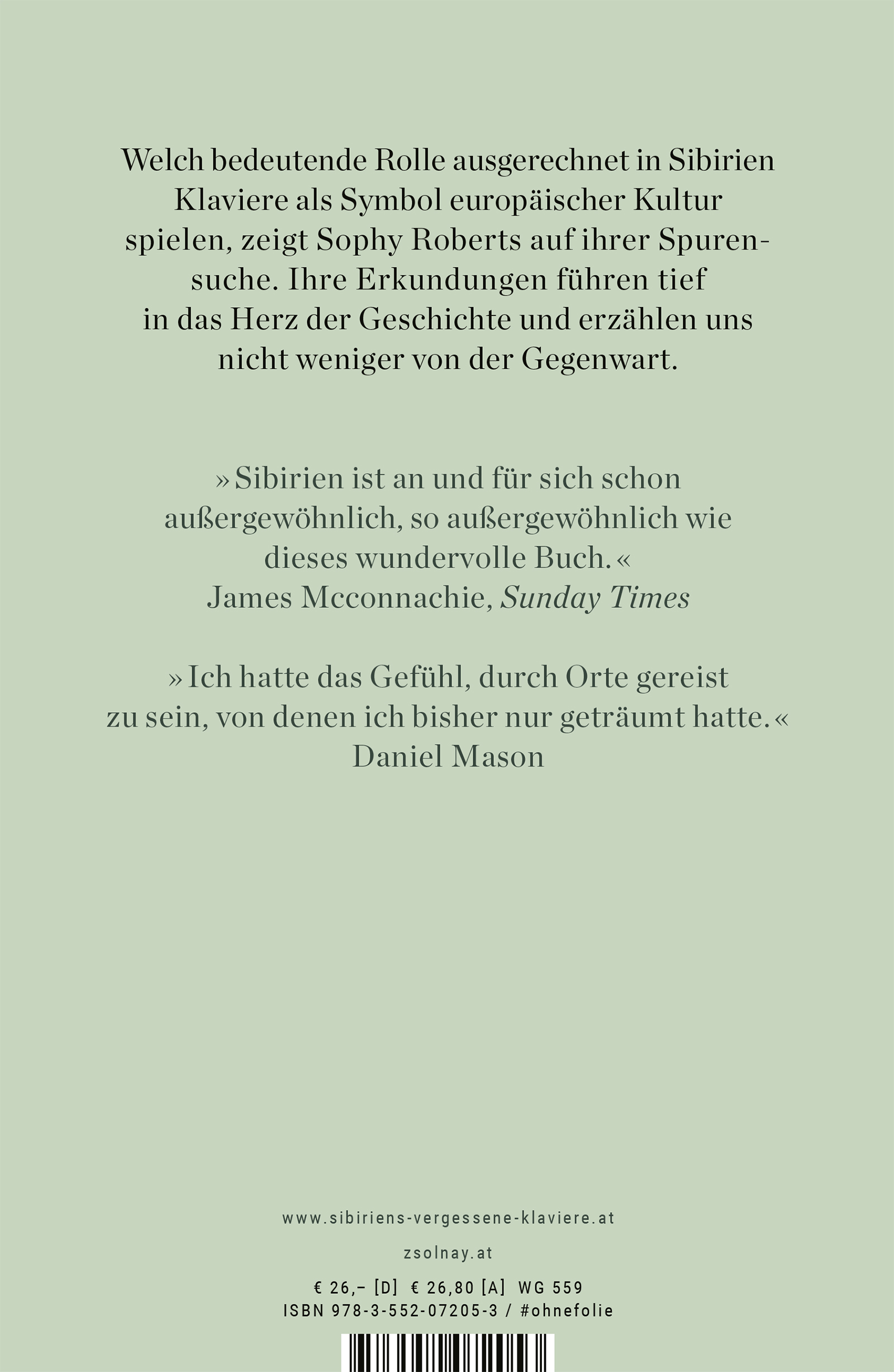 Sibirien, das ist unerbittliche Kälte und enorme Weite. Sibirien, dieses Gefängnis ohne Dach, ist aber ebenso von verblüffender Schönheit. Welch bedeutende Rolle ausgerechnet hier Klaviere als Symbol europäischer Kultur spielen, zeigt die Britin Sophy Roberts auf ihrer extravaganten Spurensuche. Dabei gelingt es ihr nicht nur, zahlreiche einst berühmte Instrumente zwischen dem Ural und der Insel Sachalin ausfindig zu machen, sondern auch ihre Geschichten zu rekonstruieren: von der Pianomanie der Zarenzeit bis zur Leidenschaft des Lotsen der Aeroflot, von der sowjetischen Manufaktur „Roter Oktober“ bis zur jungen mongolischen Pianistin Odgorel, die in ihrer Jurte Bach spielt. Sophy Roberts‘ Erkundungen führen tief in das Herz der Geschichte und erzählen uns nicht weniger von der Gegenwart.