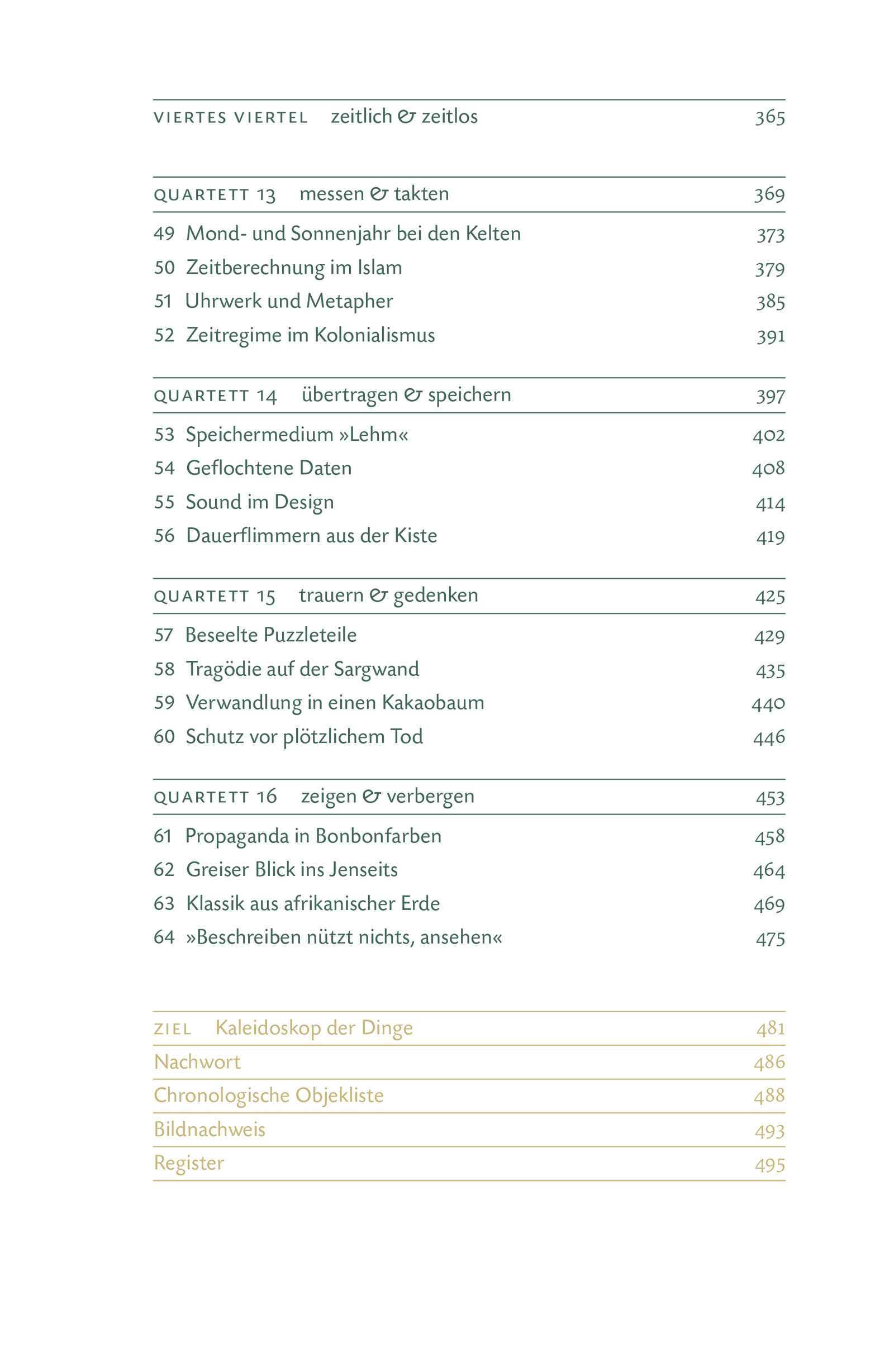 Wer einen Menschen verstehen will, muss die Dinge verstehen, die ihm wichtig sind: Alltagsgegenstände, Kunstwerke und religiöse Objekte. In den Berliner Museen findet sich eine unüberschaubare Menge davon aus allen Zeiten und allen Gegenden der Erde. Stefan Laube hat 64 von ihnen ausgewählt, um die Geschichte der menschlichen Zivilisation zu erzählen. Die beginnt mit den vier Elementen – einem Faustkeil, einem Brunnen, einer Feuermaske, einer Windharfe — und führt hin bis zur Kunst des Speicherns, sei es auf Lehm oder Festplatten. Zu jedem Thema stellt Laube vier Objekte einander gegenüber: ein Spiel, das dazu verführt, immer weiterzulesen und immer neue Entdeckungen zu machen.