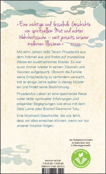 Priyadarshis Lebensgeschichte ist eine spannende Reise voller spiritueller Erfahrungen und entscheidender Begegnungen wie etwa mit dem Dalai Lama oder mit Bischof Desmond Tutu. Tenzin Priyadarshis schenkt durch seine ungewöhnliche Biografie authentische Orientierung auch für die Ausrichtung eigener innerer Werte und deren Umsetzung im Handeln. Und es ist eine wundervolle Mutmach-Geschichte, die uns lehrt, dass wir alles erreichen können, wenn wir nur unserer Intuition folgen.