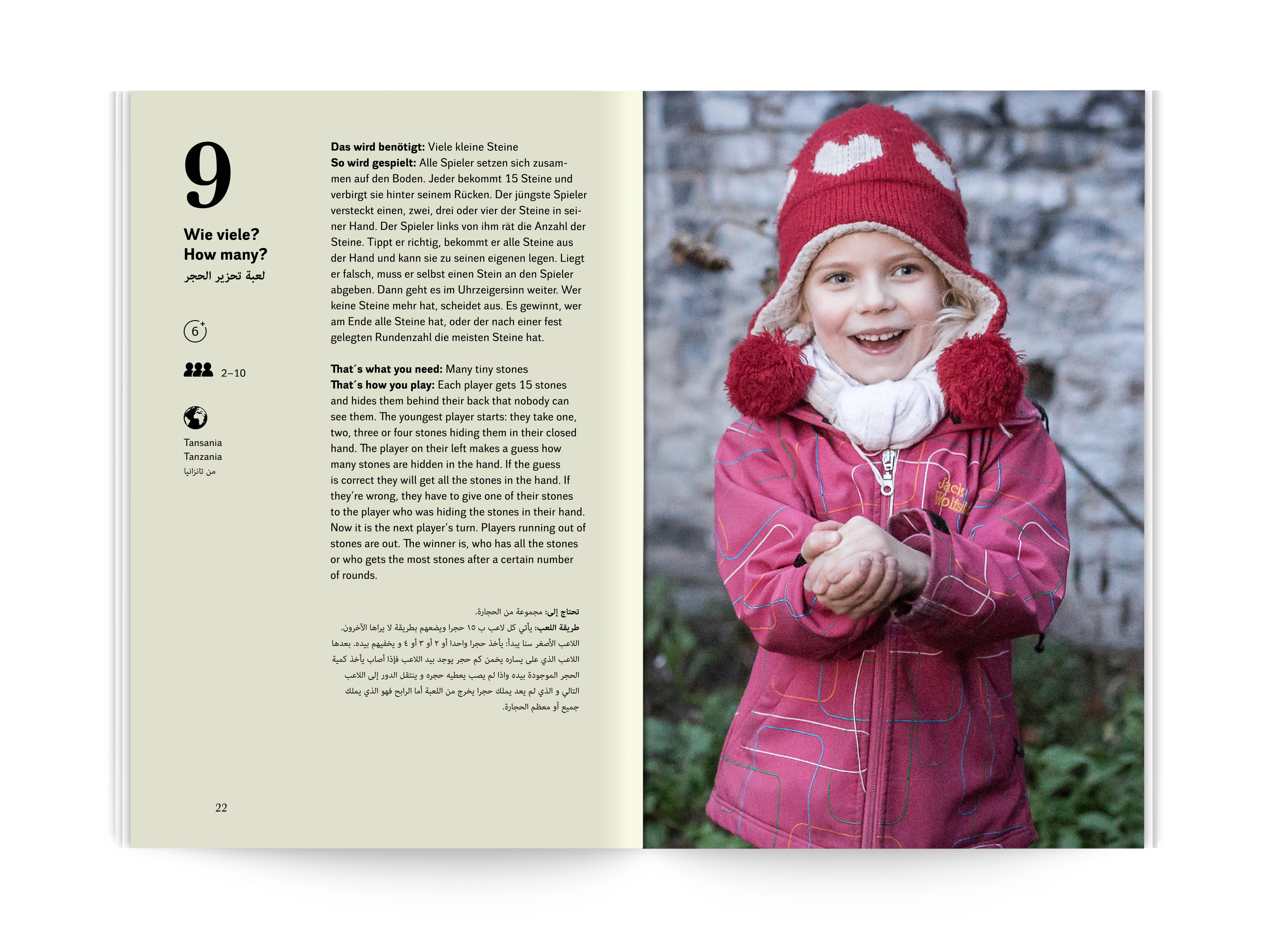 Die Spiele sind in drei Sprachen erklärt: Deutsch, Englisch und Arabisch.