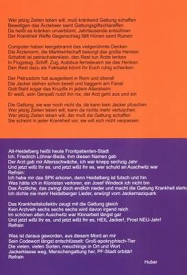 Geschichte gemacht hat allein, all-ein die Patientenfront. Für das Sozialistische Patientenkollektiv spricht sie ganz allein, für das ganze SPK, heute mehr denn je.