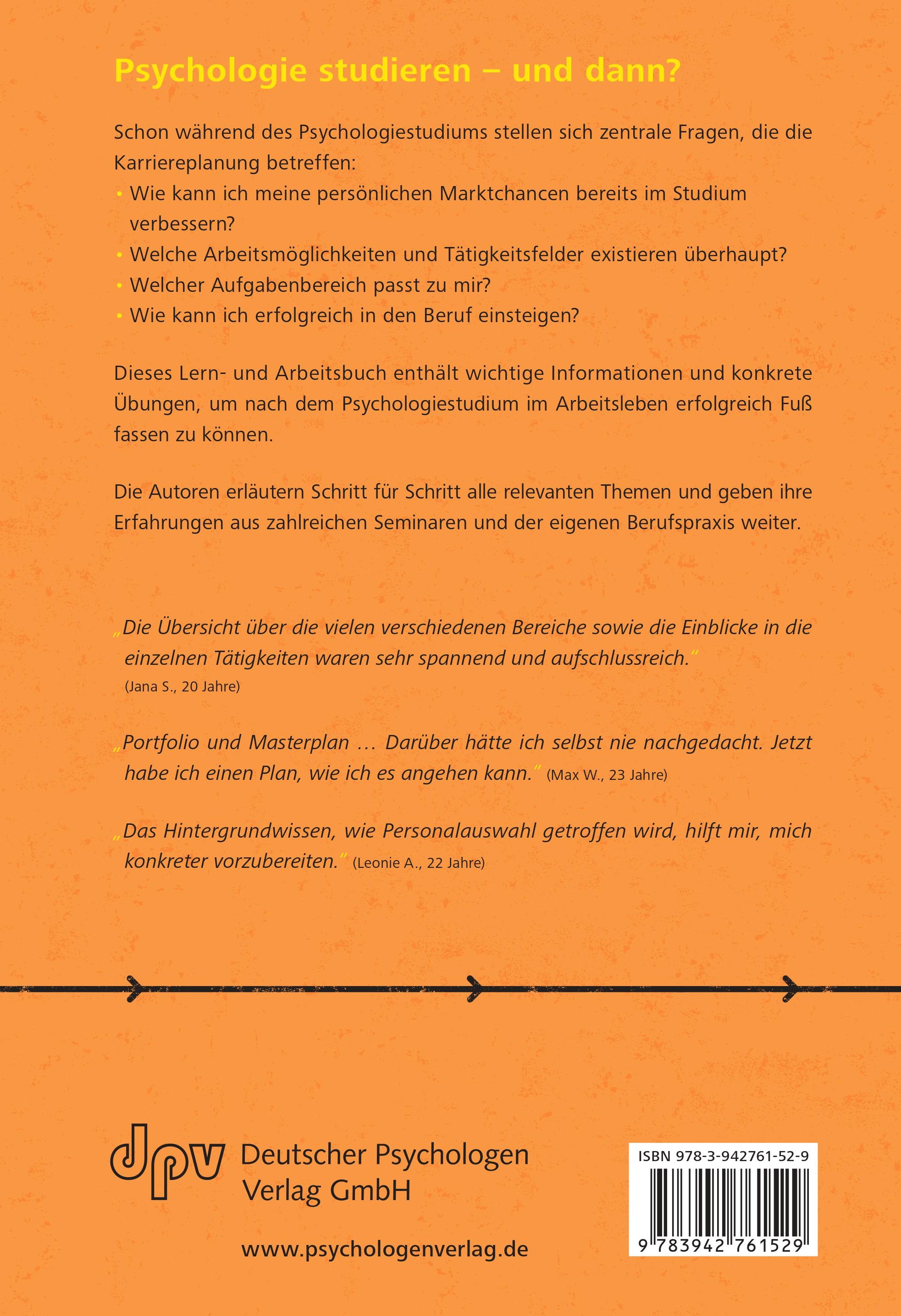Dieses Lern- und Arbeitsbuch enthält wichtige Informationen und konkrete Übungen, um nach dem Psychologiestudium im Arbeitsleben erfolgreich Fuß fassen zu können. Die Autoren erläutern Schritt für Schritt alle relevanten Themen und geben ihre Erfahrungen aus zahlreichen Seminaren und der eigenen Berufspraxis weiter.