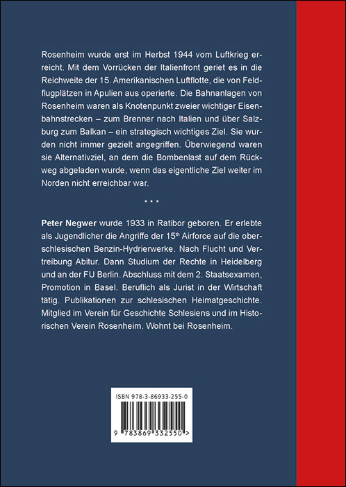 Peter Negwer wurde 1933 in Ratibor geboren. Er erlebte als Jugendlicher die Angriffe der 15th Airforce auf die oberschlesischen Benzin-Hydrierwerke. Nach Flucht und Vertreibung Abitur. Dann Studium der Rechte in Heidelberg und an der FU Berlin. Abschluss mit dem 2. Staatsexamen, Promotion in Basel. Beruflich als Jurist in der Wirtschaft tätig. Publikationen zur schlesischen Heimatgeschichte. Mitglied im Verein für Geschichte Schlesiens und im Historischen Verein Rosenheim. Wohnt bei Rosenheim.