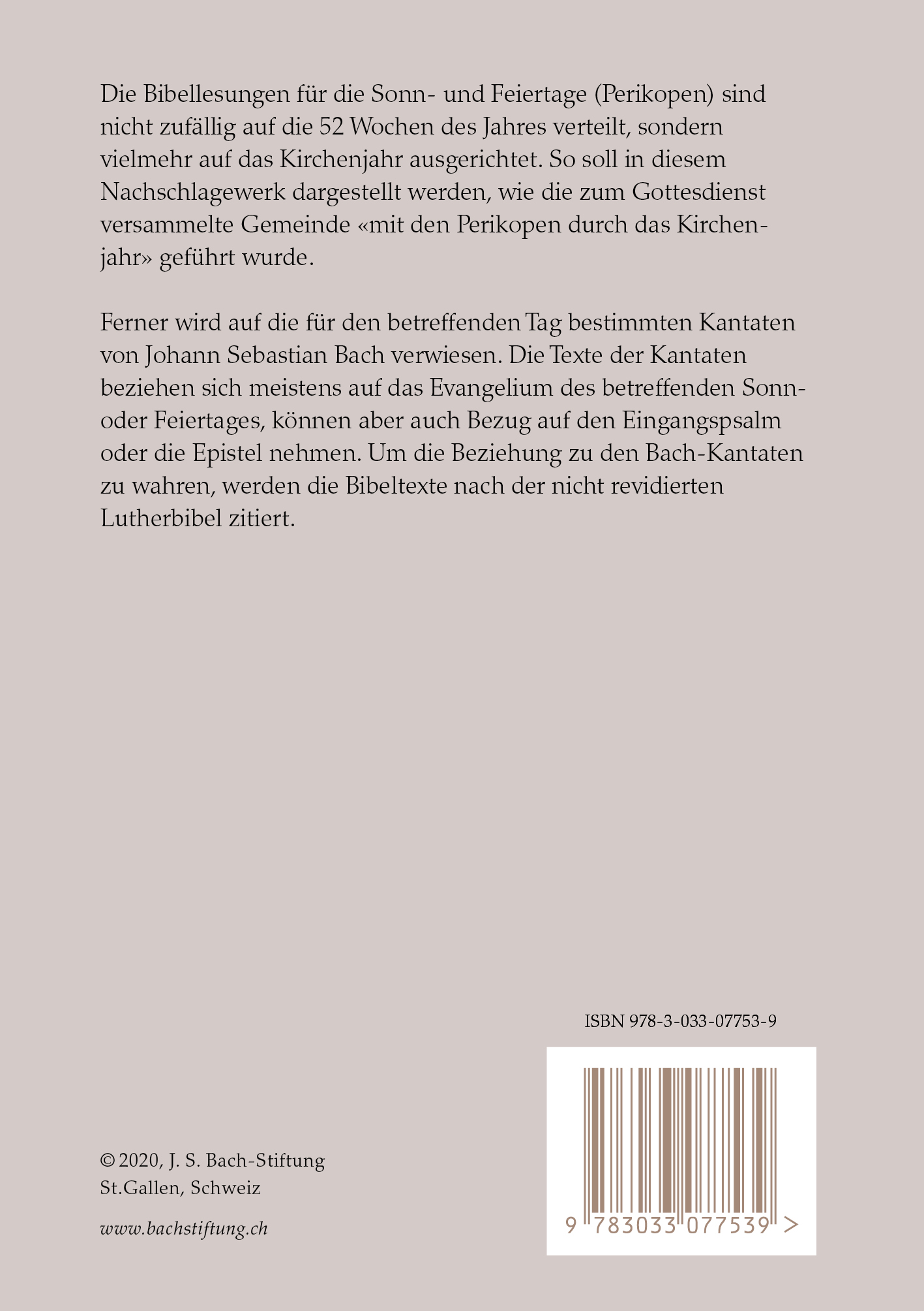 | Schlagworte | Bibeltexte • Johann Sebastian Bach • Kantaten • Nachschlagewerk • Perikopen • Theologie |