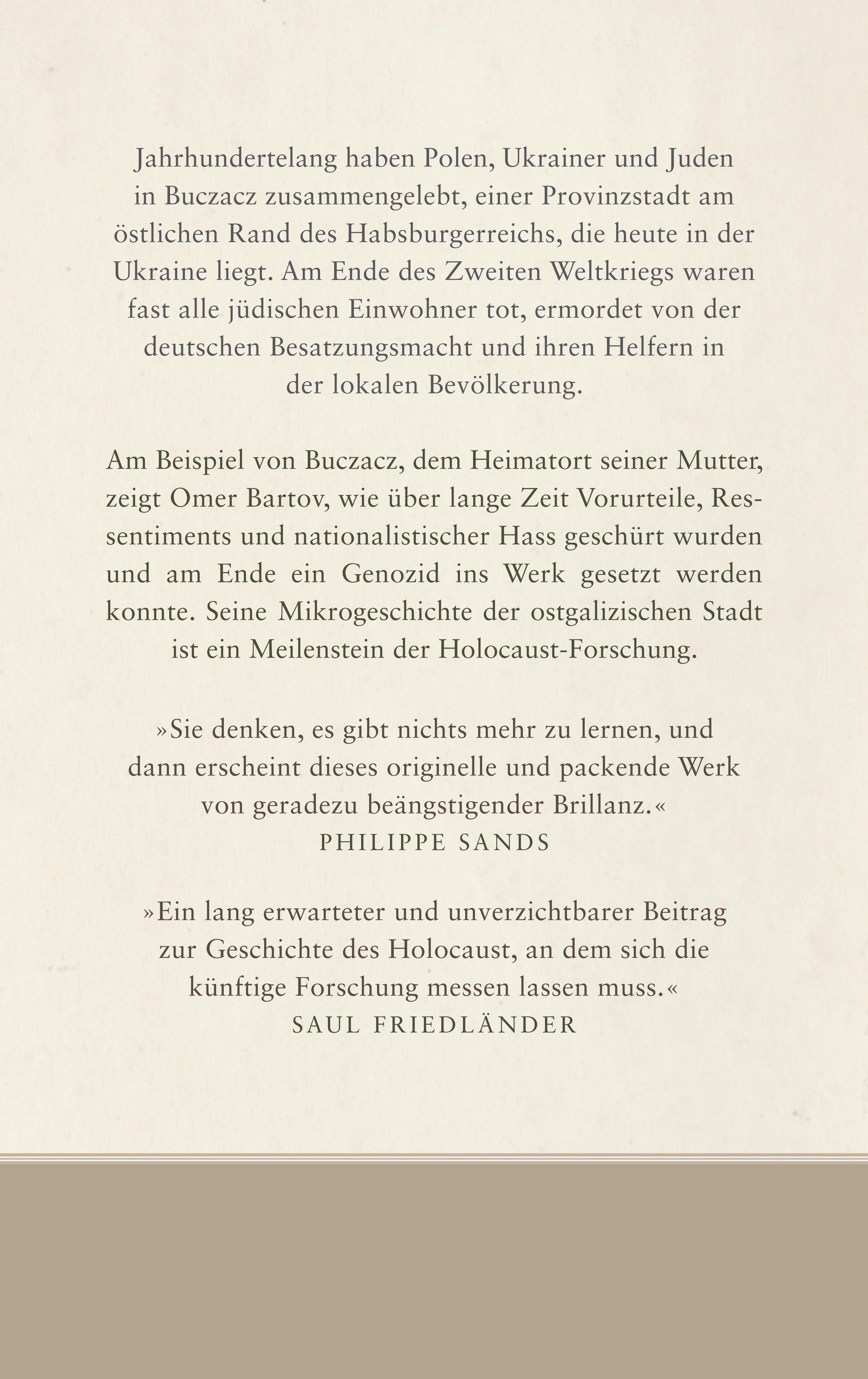 »Bartov hat der Stadt Buczacz und ihrer jahrhundertalten jüdischen Gemeinde seinem Buch in der Tat ein Schriftdenkmal gesetzt, ... das so eindrucksvoll wie beklemmend an eine von Deutschen innerhalb weniger Monate fast vollständig ausgelöschte einst lebendige Gemeinschaft erinnert.«