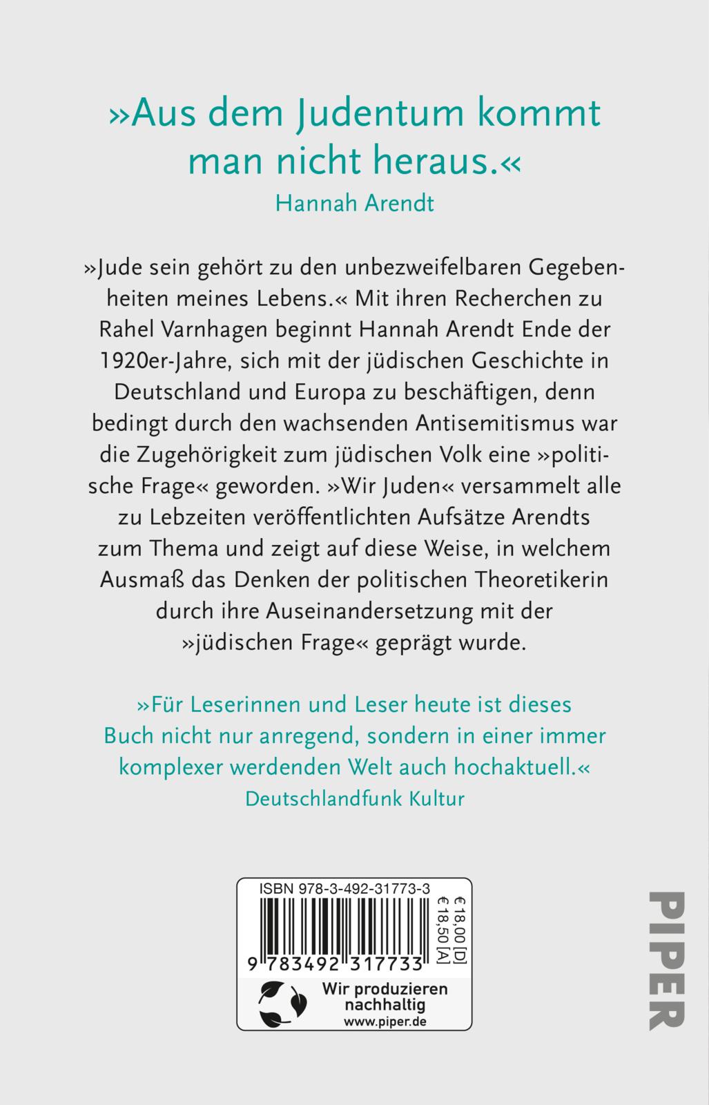 »Jude sein gehört zu den unbezweifelbaren Gegebenheiten meines Lebens.« - Hannah Arendt beginnt mit ihrer Arbeit zu Rahel Varnhagen, sich mit der jüdischen Geschichte in Deutschland zu beschäftigen, aber erst nachdem sie Deutschland 1933 verlassen hatte, setzte sie sich verstärkt mit ihrer Identität als Jüdin und der »jüdischen Frage« auseinander. Dieses Buch versammelt chronologisch alle zu Lebzeiten veröffentlichten Aufsätze Arendts zum Thema und zeigt so auch ihre Entwicklung in den diskutierten Fragen, beispielsweise ihre teilweise sehr wechselnde Haltung zu Israel und dem Zionismus. Herausgegeben, zum Teil neu übersetzt und eingeordnet von Marie Luise Knott und Ursula Ludz schließt der Band eine wichtige Lücke in der Arendt-Literatur.