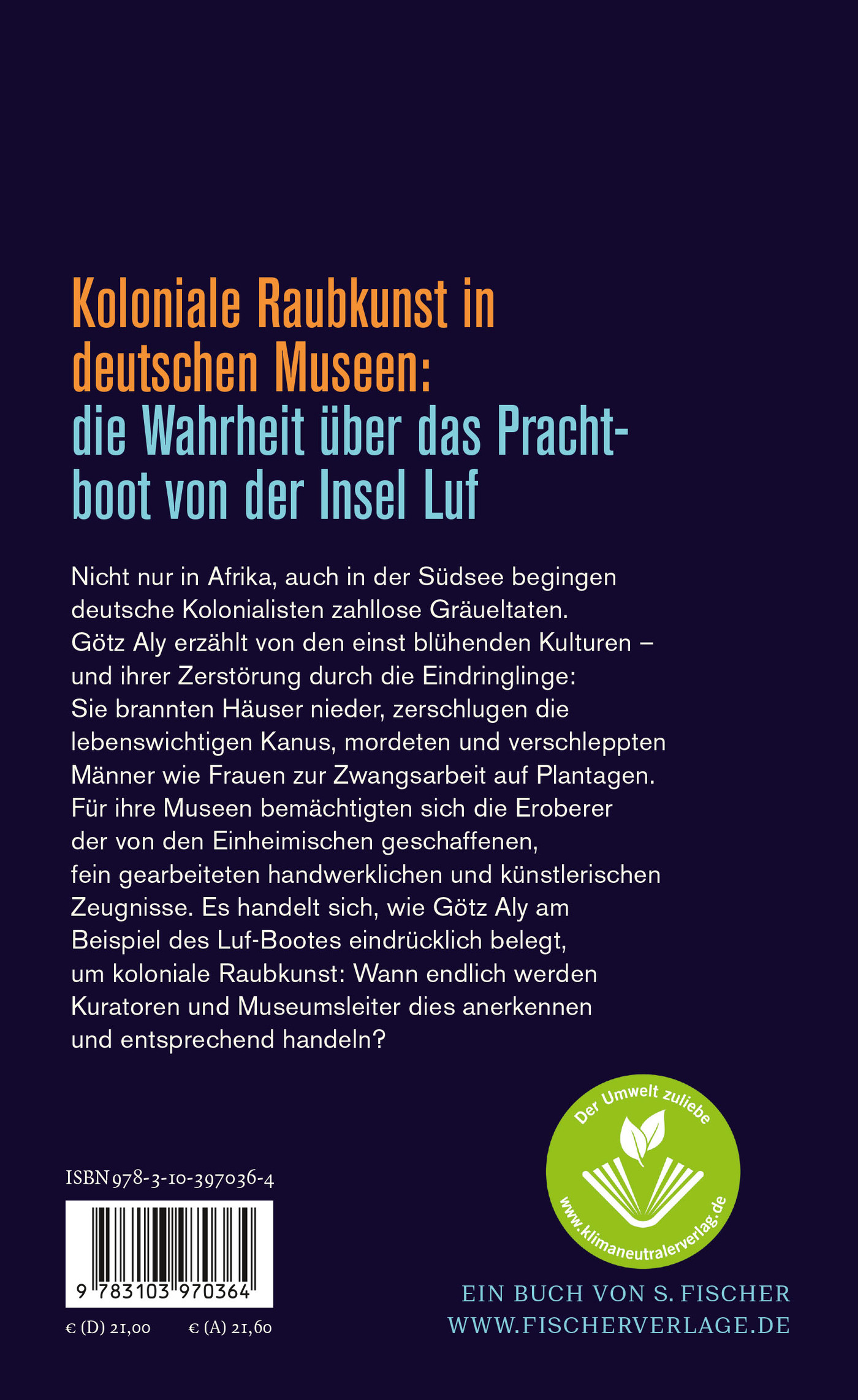 Götz Aly dokumentiert die Gewalt, Zerstörungswut und Gier, mit der deutsche »Strafexpeditionen« über die kulturellen Schätze herfielen. Das Publikum sollte und soll sie bestaunen - aber bis heute möglichst wenig vom Leid der ausgeraubten Völker erfahren. Ein wichtiger Beitrag zur Debatte über Raubkunst, Kolonialismus und Rassismus und zugleich ein erschütterndes Stück deutscher Geschichte.
