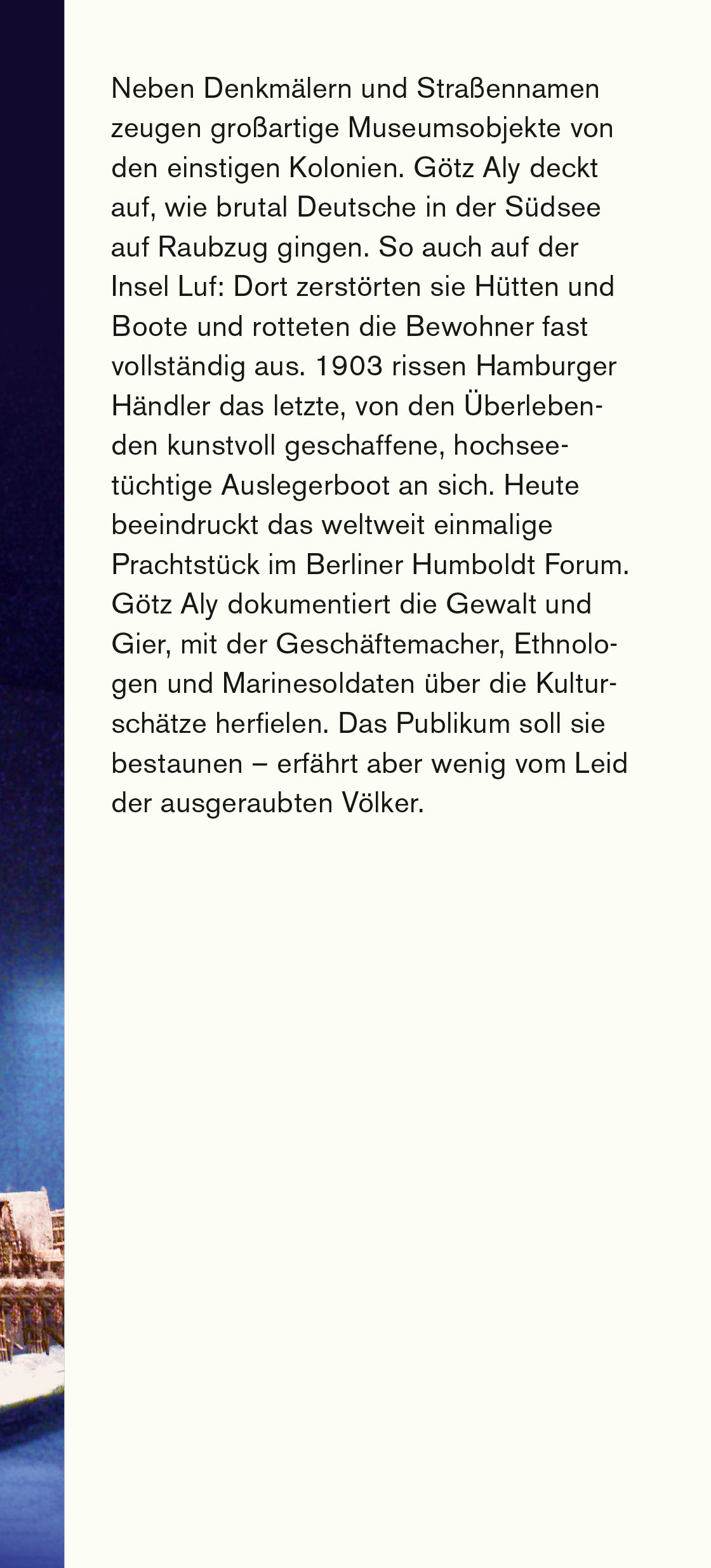 Zuletzt wurde viel über Kunstraub, aber wenig über die viel größeren Kolonialverbrechen gesprochen. Aly zeigt, dass diese beiden Sphären nicht zu trennen sind.