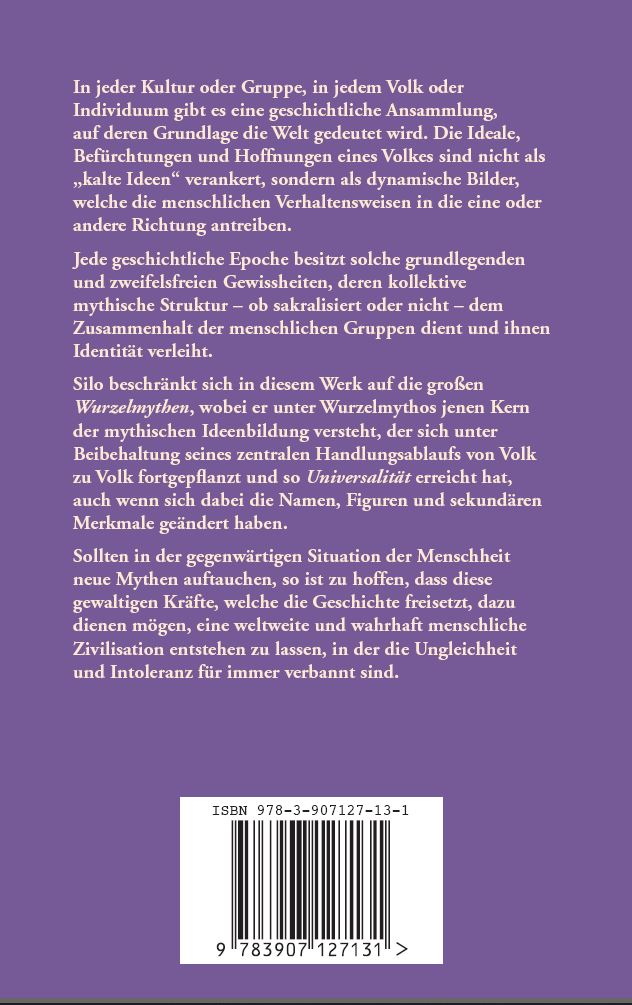 Silo beschränkt sich in diesem Werk auf die großen Wurzelmythen, wobei er unter Wurzelmythos jenen Kern der mythischen Ideenbildung versteht, der sich unter Beibehaltung seines zentralen Handlungsablaufs von Volk zu Volk fortgepflanzt und so Universalität erreicht hat, auch wenn sich dabei die Namen, Figuren und sekundären Merkmale geändert haben.