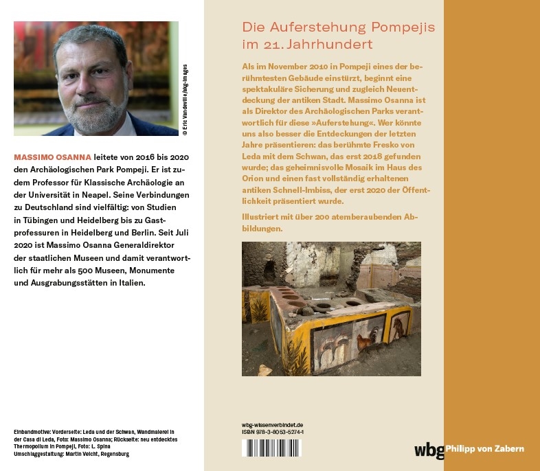 Es ist Anfang November 2010. Kurz bevor sich die Tore öffnen und die Besucher hereinströmen, stürzt in Pompeji eines der berühmtesten Gebäude ein. Die Nachricht geht um die Welt, italienische und internationale Zeitungen prangern den Zustand der Vernachlässigung an, in dem sich das Flaggschiff des archäologischen Erbes in Italien befindet. Seitdem sind zehn Jahre vergangen, in denen Pompeji buchstäblich neu erstand. Massimo Osanna ist einer, wenn nicht der wichtigste Protagonist dieser »Auferstehung«. Wer könnte besser als er durch die grandiosen Entdeckungen der letzten Jahre führen: Fresken wie das berühmte Bild von Leda und dem Schwan, das 2018 gefunden wurde; prächtige Mosaiken wie im Haus des Orion. Gemälde, Graffiti, Architektur, die hier zum ersten Mal in Buchform publiziert werden - mit vielen bislang unveröffentlichten Bildern.