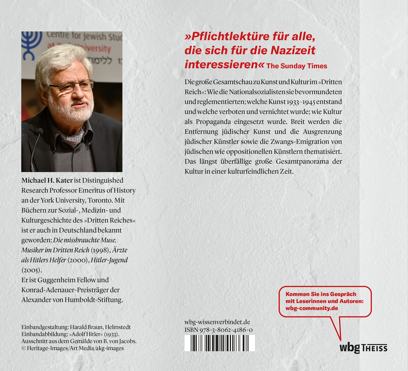 Der renommierte Zeithistoriker Michael H. Kater schreibt die erste moderne Gesamtschau zu Kunst und Kultur im »Dritten Reich«: Wie die Nationalsozialisten sie bevormundeten und reglementierten; welche Kunst 1933-1945 entstand und welche verboten und vernichtet wurde; wie Kultur als Propaganda eingesetzt wurde. Breit wird das Thema der Entfernung jüdischer Kunst und der Ausgrenzung jüdischer Künstler thematisiert sowie der Bereich der Zwangs-Emigration von jüdischen