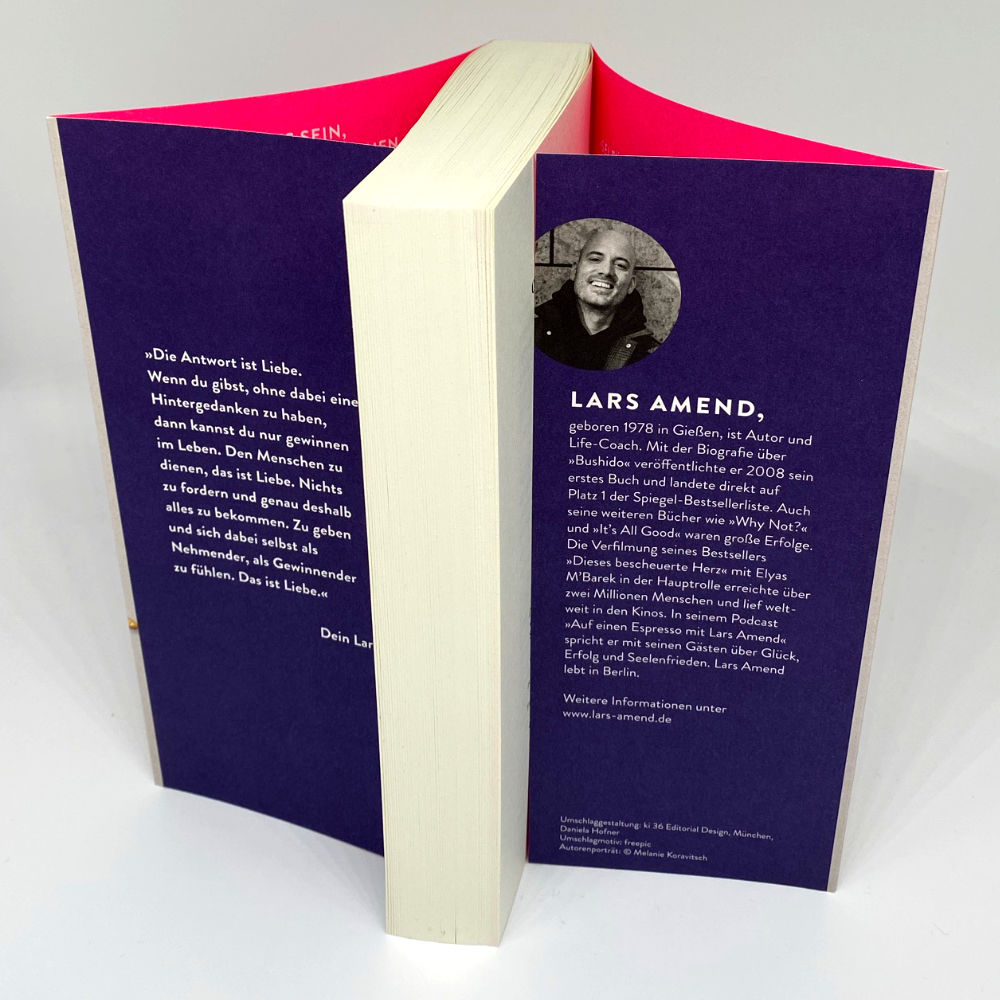 Lars Amend, geboren 1978 in Gießen, ist Autor und Life-Coach. Mit der Biografie von »Bushido« veröffentlichte er 2008 sein erstes Buch und landete direkt auf Platz 1 der Spiegel-Bestsellerliste. Auch seine weiteren Bücher wie »Why Not?« und »It's All Good« waren große Erfolge. Die Verfilmung seines Bestsellers »Dieses bescheuerte Herz« erreichte mit Elyas M'Barek in der Hauptrolle über zwei Millionen Menschen und lief weltweit in den Kinos. In seinem Podcast »Auf einen Espresso mit Lars Amend« spricht er mit seinen Gästen über Glück, Erfolg und Seelenfrieden. Lars Amend lebt in Berlin.