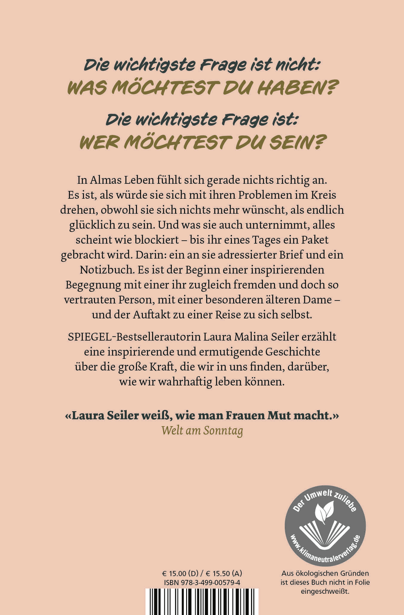 In Almas Leben fühlt sich gerade nichts richtig an. Es ist, als würde sie sich mit ihren Problemen im Kreis drehen, obwohl sie sich nichts mehr wünscht, als endlich einfach glücklich zu sein. Aber was sie auch unternimmt, alles scheint wie blockiert - bis ihr eines Tages ein Paket gebracht wird. Darin: ein an sie adressierter Brief und ein Notizbuch. Es ist der Beginn einer inspirierenden Begegnung mit einer ihr zugleich fremden und doch so vertrauten Person, mit einer besonderen älteren Dame - und der Auftakt zu einer Reise zu sich selbst.