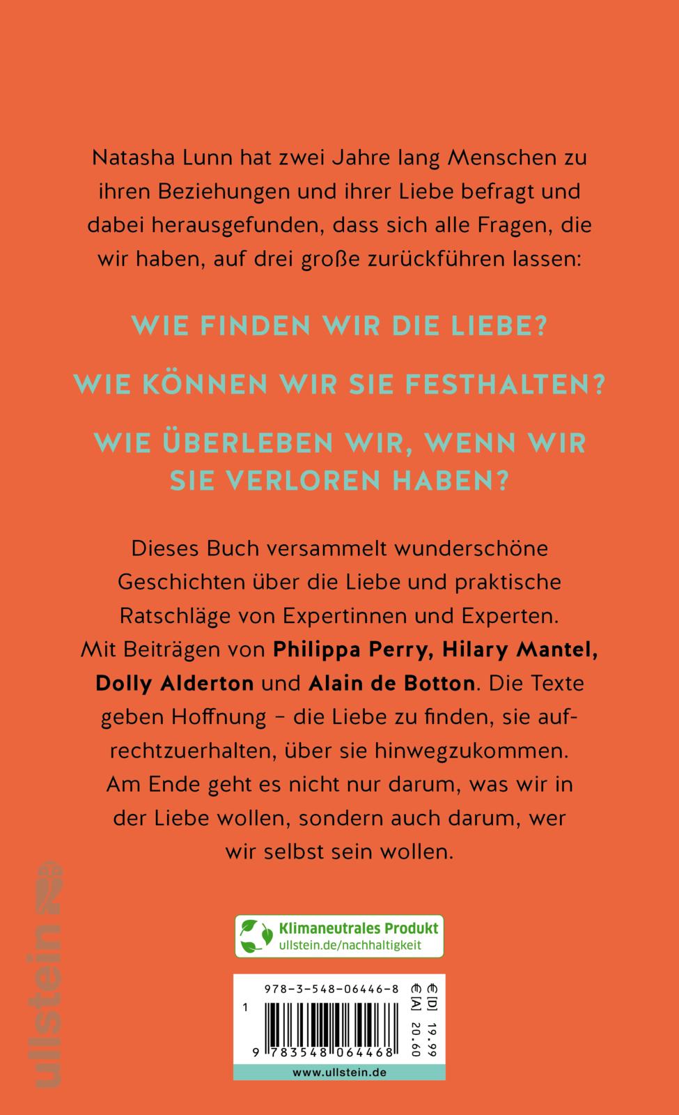Dieses Buch versammelt wunderschöne Geschichten über die Liebe und praktische Ratschläge von Experten. So kommen etwa Philippa Perry, Hilary Mantel und Alain de Botton zu Wort. Es gibt Hoffnung - die Liebe zu finden, sie aufrechtzuerhalten, über sie hinwegzukommen. Und es inspiriert, die Liebe zu Partnern, Freunden und Kindern ernst zu nehmen und sich selbst und seine Wünsche immer wieder zu hinterfragen. Denn es geht nicht nur darum, was wir in der Liebe wollen, sondern auch darum, wer wir selbst sein wollen.