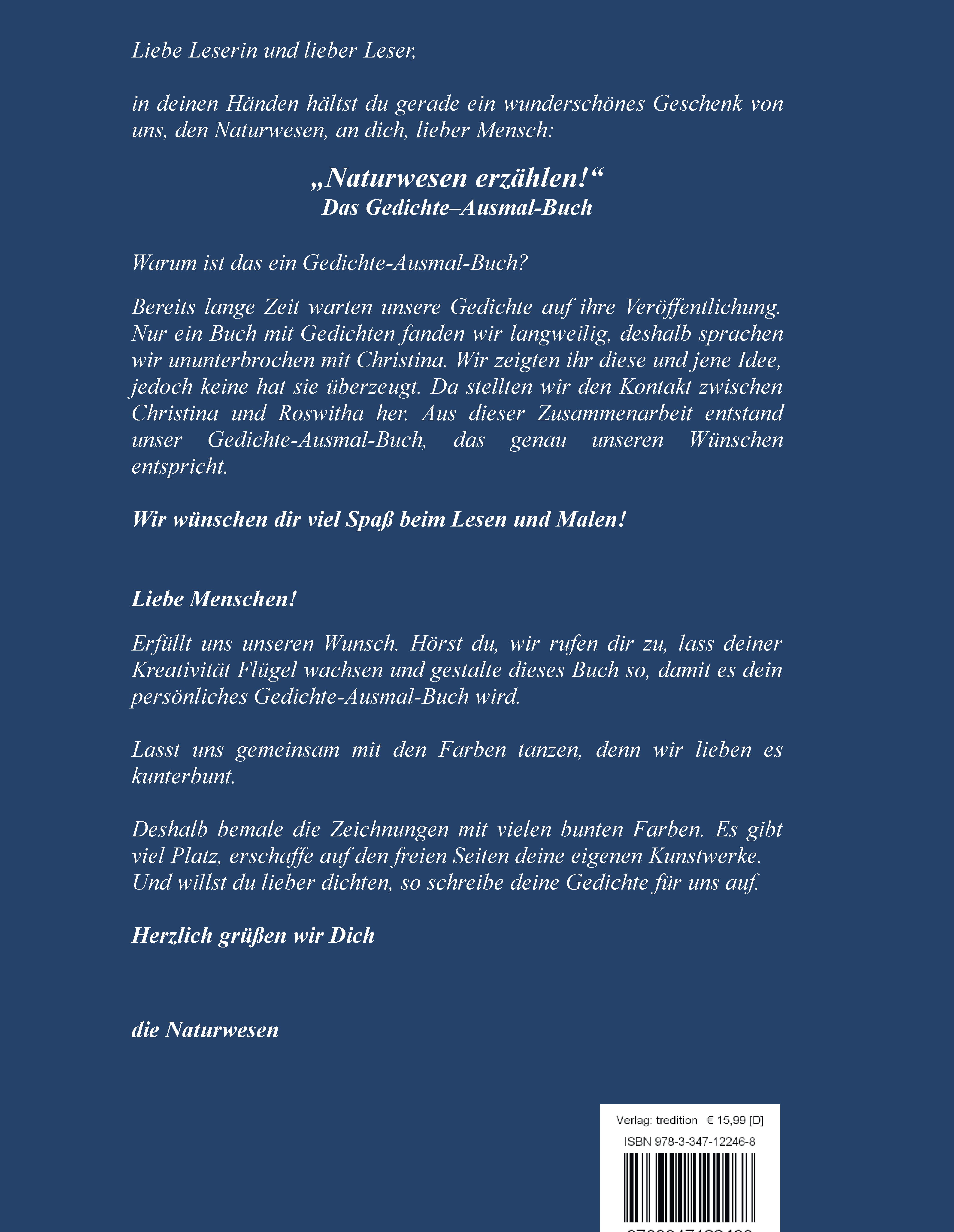 | Schlagworte | Ausmalbuch für Erwachsene • AusmalbuchfürErwachsene • Baumgeister • Dankesgedicht • das Paradies ist da • dasParadiesistda • Engel am Himmel • EngelamHimmel • Erwachen • Gedichte • Glücksbringerin • Lebensweisheiten • Liebe • Naturwesen • neuezeit • Neue Zeit • Stille • Weltfrieden • Zwerge |