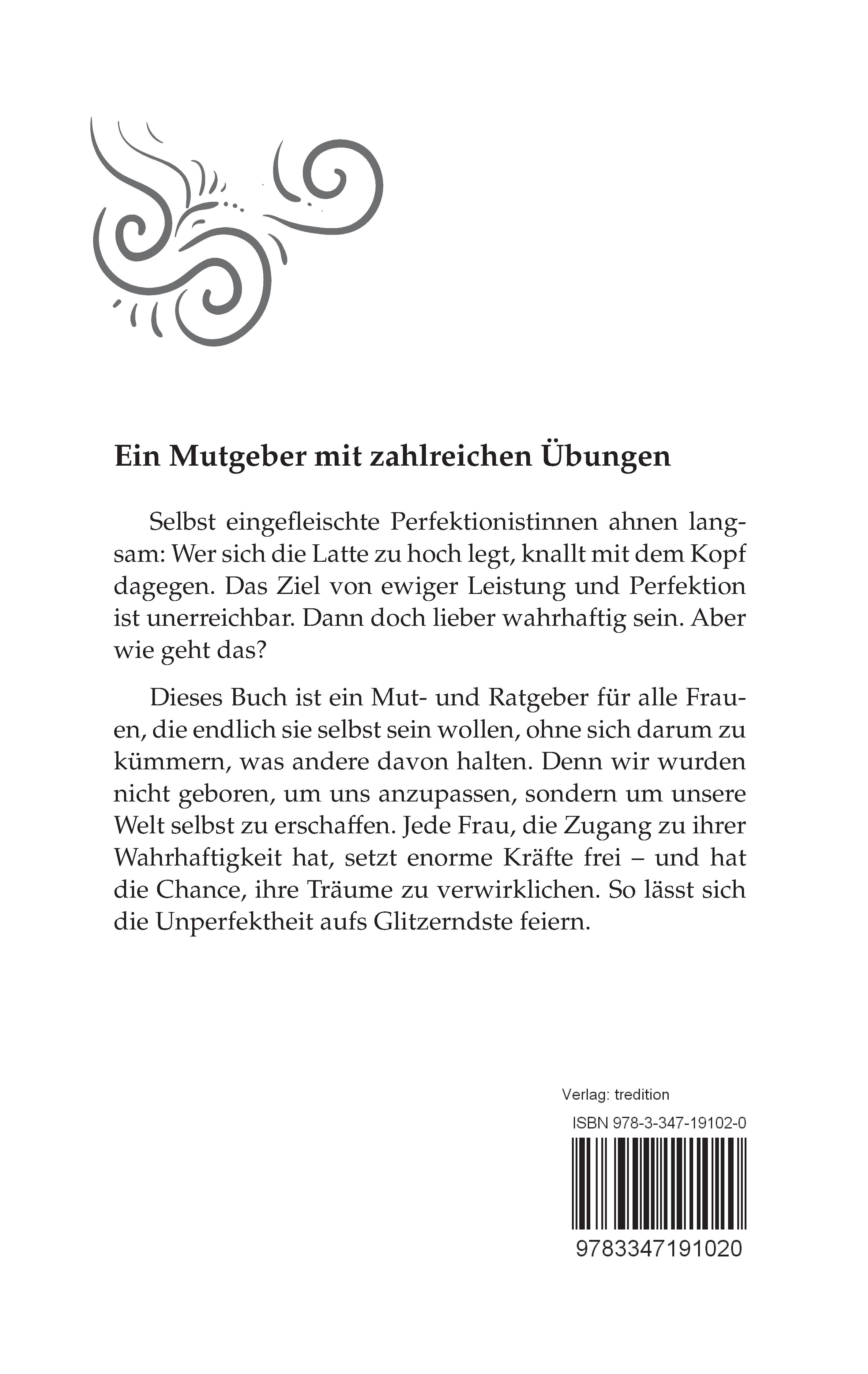 Selbst eingefleischte Perfektionistinnen ahnen langsam: Wer sich die Latte zu hoch legt, knallt mit dem Kopf dagegen. Das Ziel von ewiger Leistung und Perfektion ist unerreichbar. Dann doch lieber wahrhaftig sein. Aber wie geht das?Dieses Buch ist ein Mut- und Ratgeber für alle Frauen, die endlich sie selbst sein wollen, ohne sich darum zu kümmern, was andere davon halten. Denn wir wurden nicht geboren, um uns anzupassen, sondern, um unsere Welt selbst zu erschaffen. Jede Frau, die Zugang zu ihrer Wahrhaftigkeit hat, setzt enorme Kräfte frei - und hat die Chance, ihre Träume zu verwirklichen. So lässt sich die Unperfektheit aufs Glitzerndste feiern.
