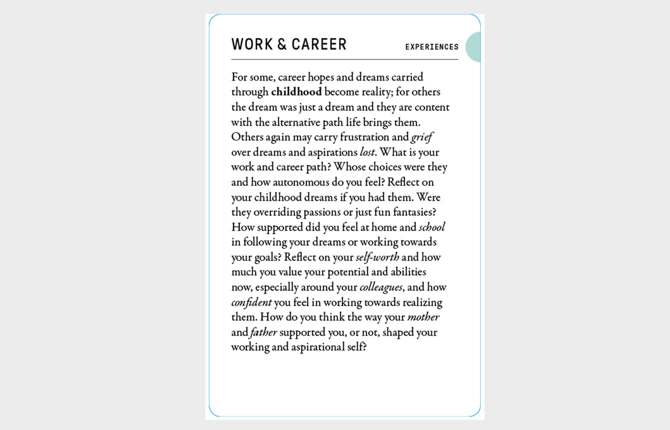 The Therapy Toolkit includes sixty cards devised by an experienced and qualified therapist - each featuring questions and reflections that emulate the process of therapy. Split into four categories - Experiences, Emotions, Relationships and Childhood - and peer-reviewed, the gentle, guiding questions on each card offer a simple first step into therapy. The thoughtful gift package is accompanied by provoking and meditative illustrations by South Korean artist Cindy Kang - as well as a comprehensive booklet which includes an introduction to the therapeutic process, how to use the deck and further resources.