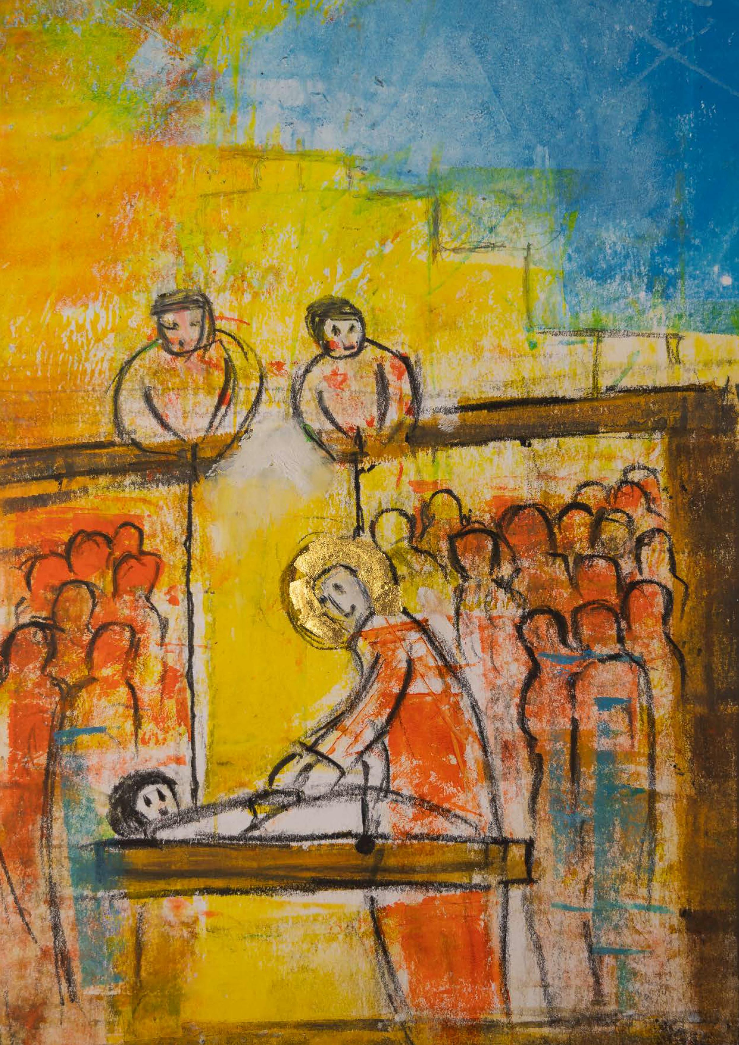 Jesus heilt den Blinden, einen Taubstummen, den Gelähmten, den Mann mit der verdorrten Hand, einen Aussätzigen, einen Besessenen, Jesus ruft Zachäus, Auferweckung des Jünglings von Nain