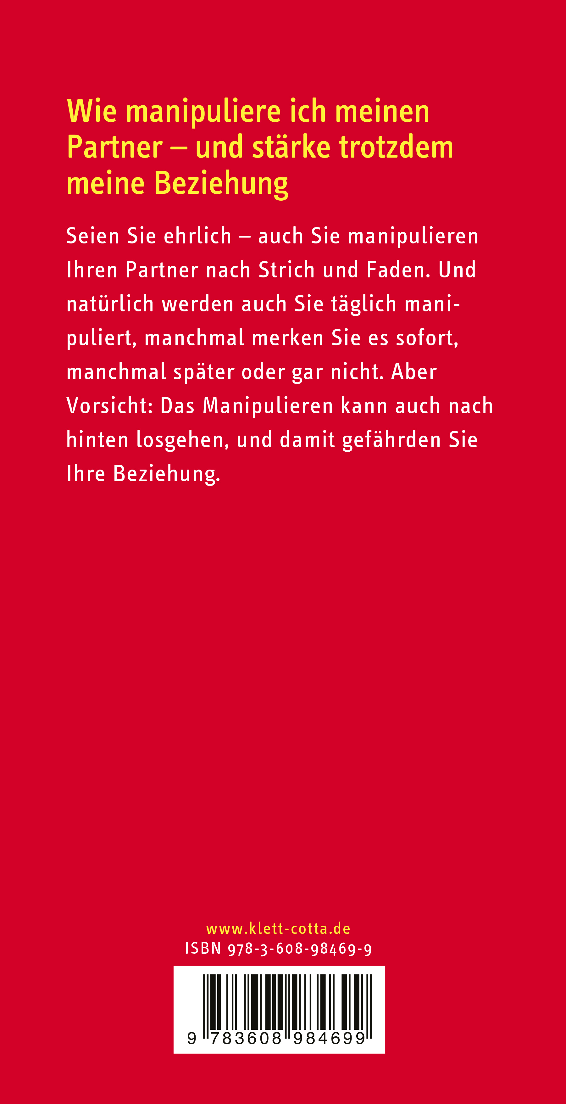 Dieses Buch zeigt Ihnen, wie Sie eigene Strategien richtig und erfolgreich einsetzen, wie Sie aber auch die Manipulationsversuche ihrer Partner durchschauen und angemessen darauf reagieren. Richtiges Manipulieren gefährdet nicht etwa Ihre Beziehung, nein, es tut ihr sogar gut und macht das Zusammenleben spannend.