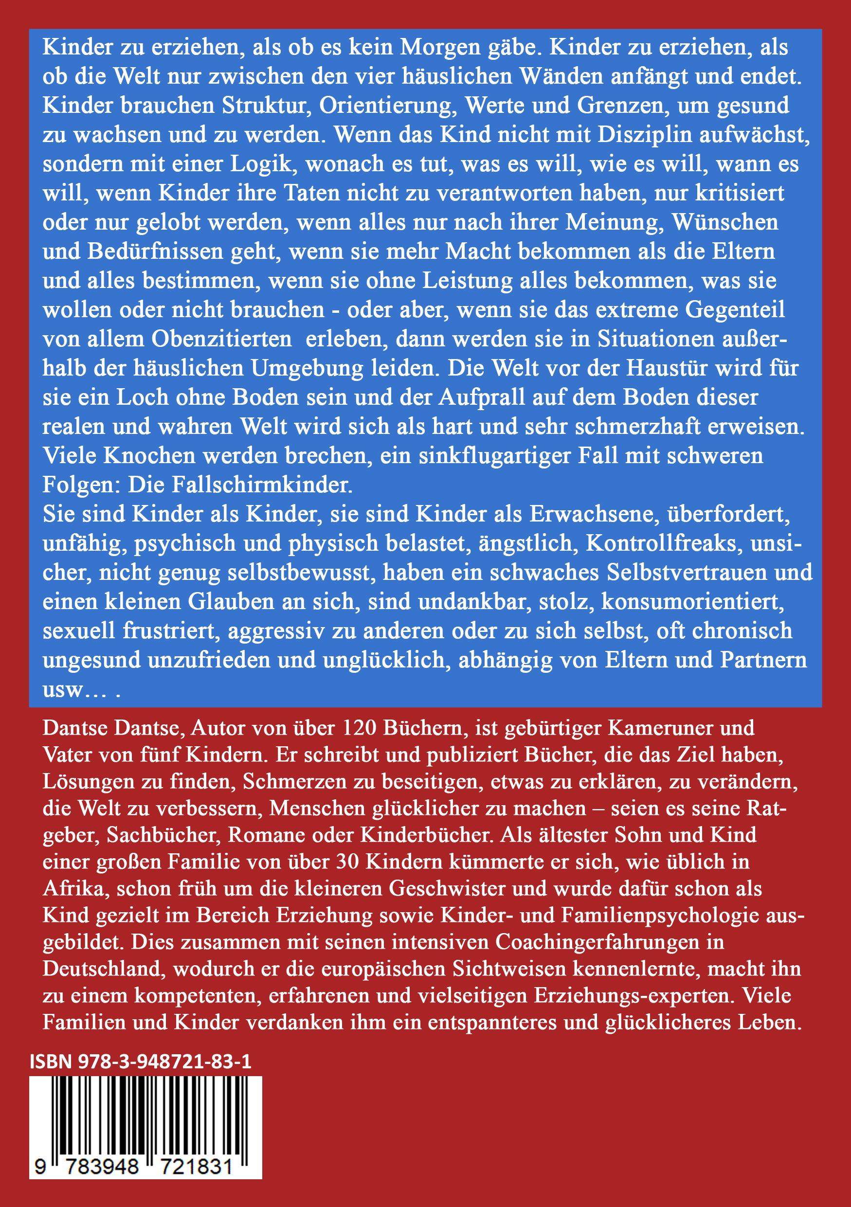 In diesem 480 Seiten langen, sehr schön und gleichzeitig gut verständlich geschriebenen Buch, einem psychologischen Ratgeber zum Thema Kindererziehung, von Erfolgsautor und dem sehr erfahrenen Coach sowie Vater von fünf Kindern Dantse Dantse, wird dieser Frage sehr gründlich auf den Grund gegangen.