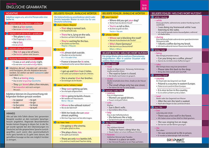 | Schlagworte | Abitur • Dreipunkt • Dreipunkt-Verlag • Englisch • Fremdsprache • Gramatik • Grammatik • Gymnasium • Info-Tafel • InfoTafel • Lehrer • Lernen • Regeln • Schule • Sprache • Sprechen • Studium • Übersicht • unregelmäßig • Verben • Vokabeln |