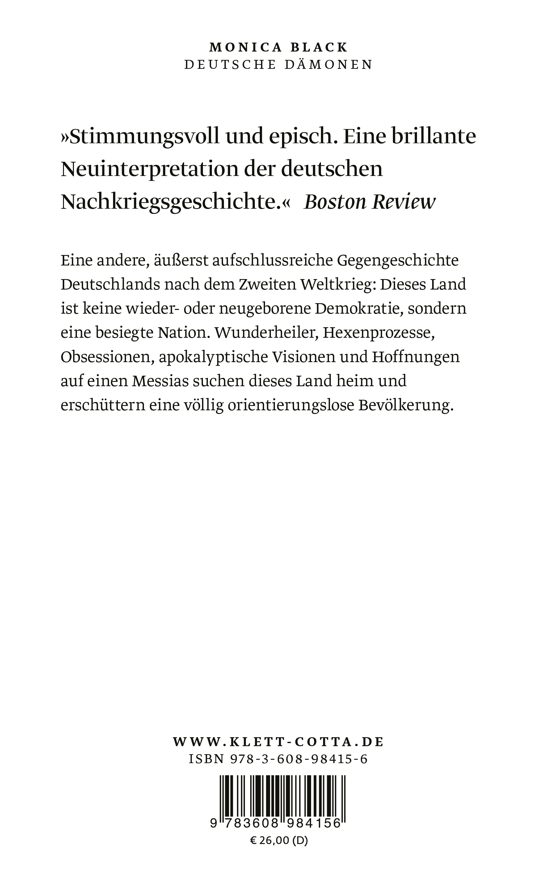 Deutschland ist nach dem Zweiten Weltkrieg keine wieder- oder neugeborene Demokratie, sondern eine besiegte Nation, die von Wunderheilern, Hexenprozessen, Obsessionen, apokalyptischen Visionen und Hoffnungen auf einen Messias heimgesucht und erschüttert wurde.