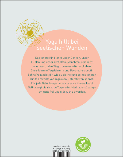 Außerdem gibt die Autorin wertvolle Meditationen an die Hand, mit denen wir unser inneres Kind heilen können. Mit ihrem psychologischen Fachwissen baut Selina Vogt viele konkrete psychologische Tipps ein, die uns im Alltag helfen und bestärken. Egal ob Wut, Angst oder Trauer: Für jede Gefühlslage bietet Selina Vogt konkrete Yoga-Übungen und ermöglicht so ein erfülltes und glückliches Leben.