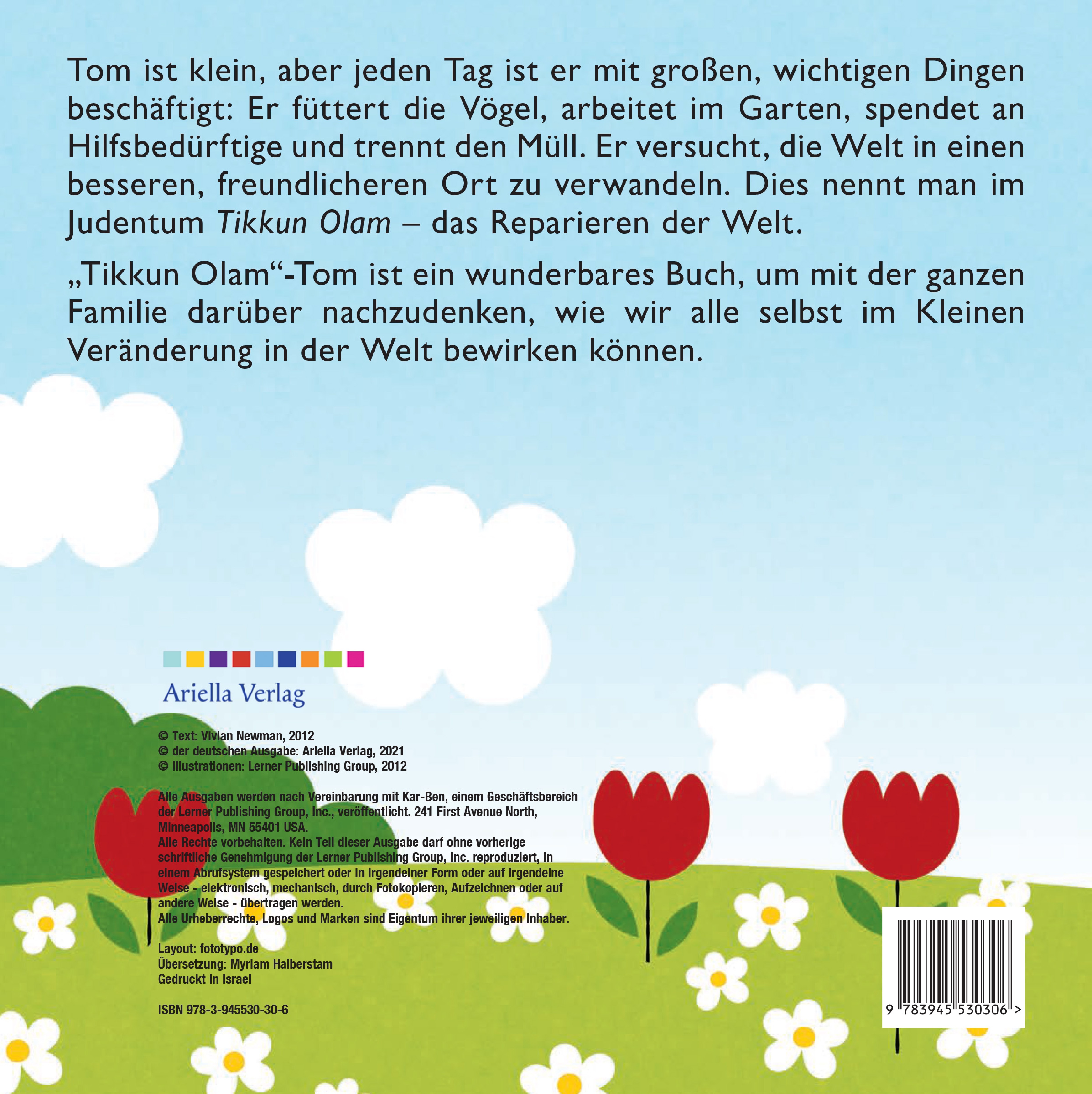 Tom ist klein, aber jeden Tag ist er mit großen, wichtigen Dingen beschäftigt: Er füttert die Vögel, arbeitet im Garten, spendet anHilfsbedürftige und trennt den Müll. Er versucht, die Welt in einen besseren, freundlicheren Ort zu verwandeln. Dies nennt man im Judentum Tikkun Olam - das Reparieren der Welt. "Tikkun Olam" -Tom ist ein wunderbares Buch, um mit derganzen Familie darüber nachzudenken, wie Sie selbst im Kleinen Veränderung in der Welt bewirken können.