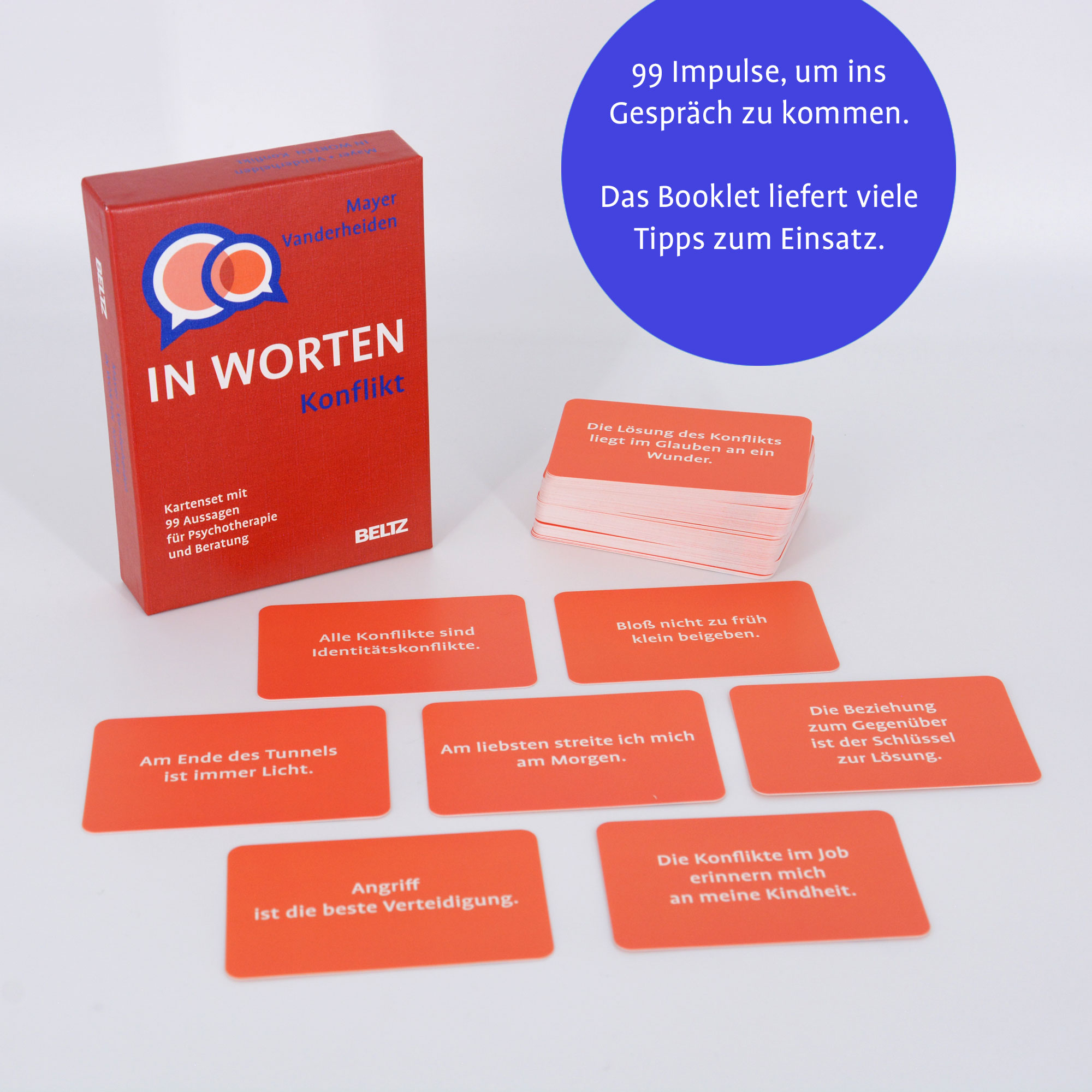 Das Kartenset ist Teil der Reihe »In Worten«: Die Sets umfassen eine Anzahl von reinen Textkarten zu einem bestimmten Thema. Sie werden im Rahmen von Therapie, Beratung und Coaching eingesetzt.