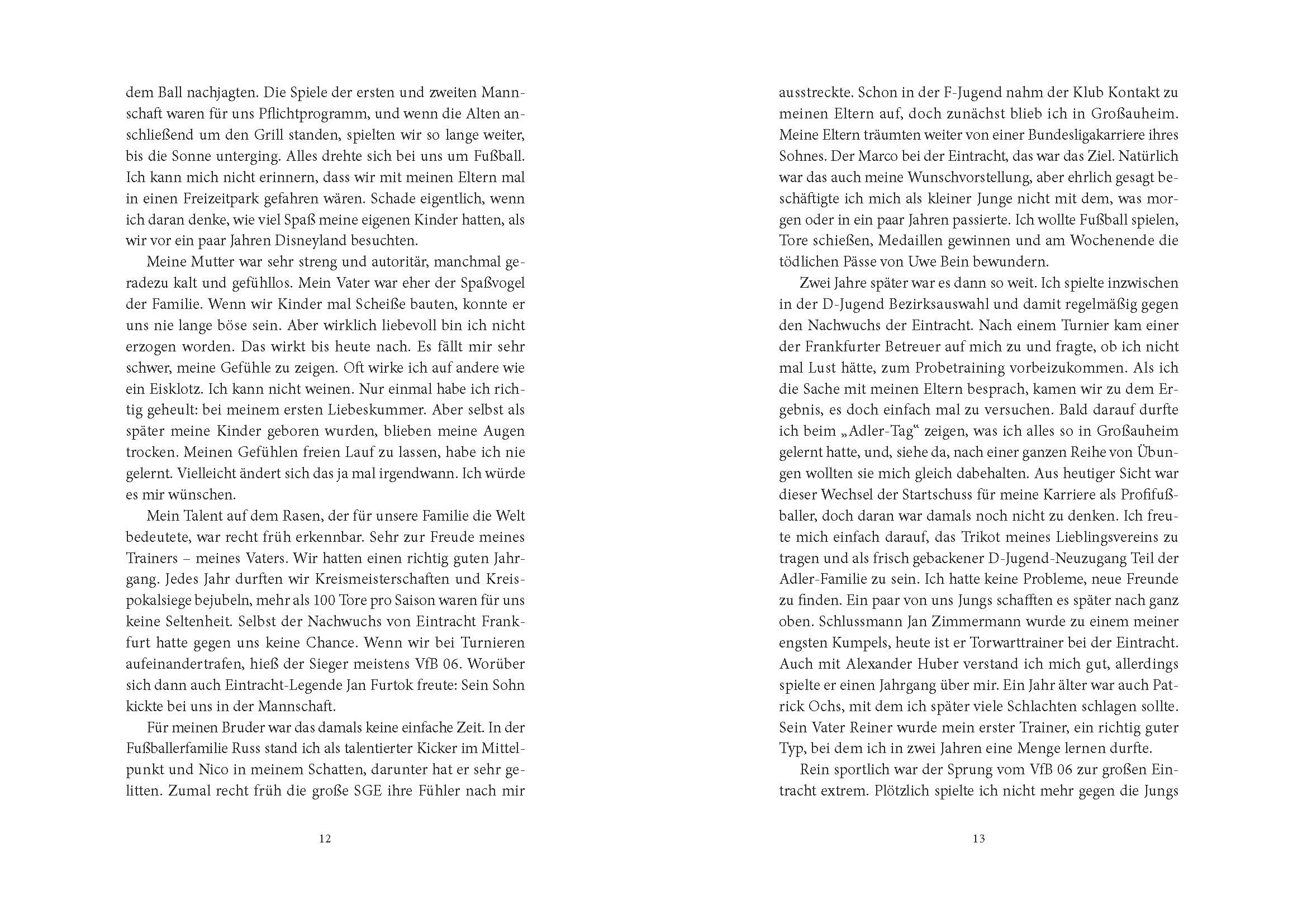 Wenn der Fußball wie das Leben ist, dann war die Karriere von Marco Russ wie ein Zweikampf. Ein Zweikampf mit sich selbst auf dem steinigen Weg vom Jugendspieler zum langjährigen Kapitän und Publikumsliebling von Eintracht Frankfurt. Ein Zweikampf aber auch gegen den Hodenkrebs, an dem er völlig überraschend erkrankte und der ihn fast vom Platz gestellt hätte. Gemeinsam mit Bestseller-Autor Alex Raack erzählt Russ, wie er mit der Eintracht Aufstiege feierte, Abstiege betrauerte, dreimal das DFB-Pokalfinale erreichte und es 2018 sensationell gewann. Wie er mit seinem Team in Europa für Furore sorgte und mithalf, aus der einstigen "Diva vom Main" einen der aufregendsten Klubs der Bundesliga zu machen. Aber dies ist nicht nur die Geschichte eines umjubelten Fußballprofis, sondern auch die eines jungen Mannes, der eine gefährliche Krankheit besiegte, um am Ende wieder auf dem Platz zu stehen. Ein Buch für alle, die den Fußball lieben. Ein Buch nicht nur, aber besonders für die treuen Fans von Eintracht Frankfurt. Und ein Buch für alle, die die Hoffnung niemals aufgeben werden.
