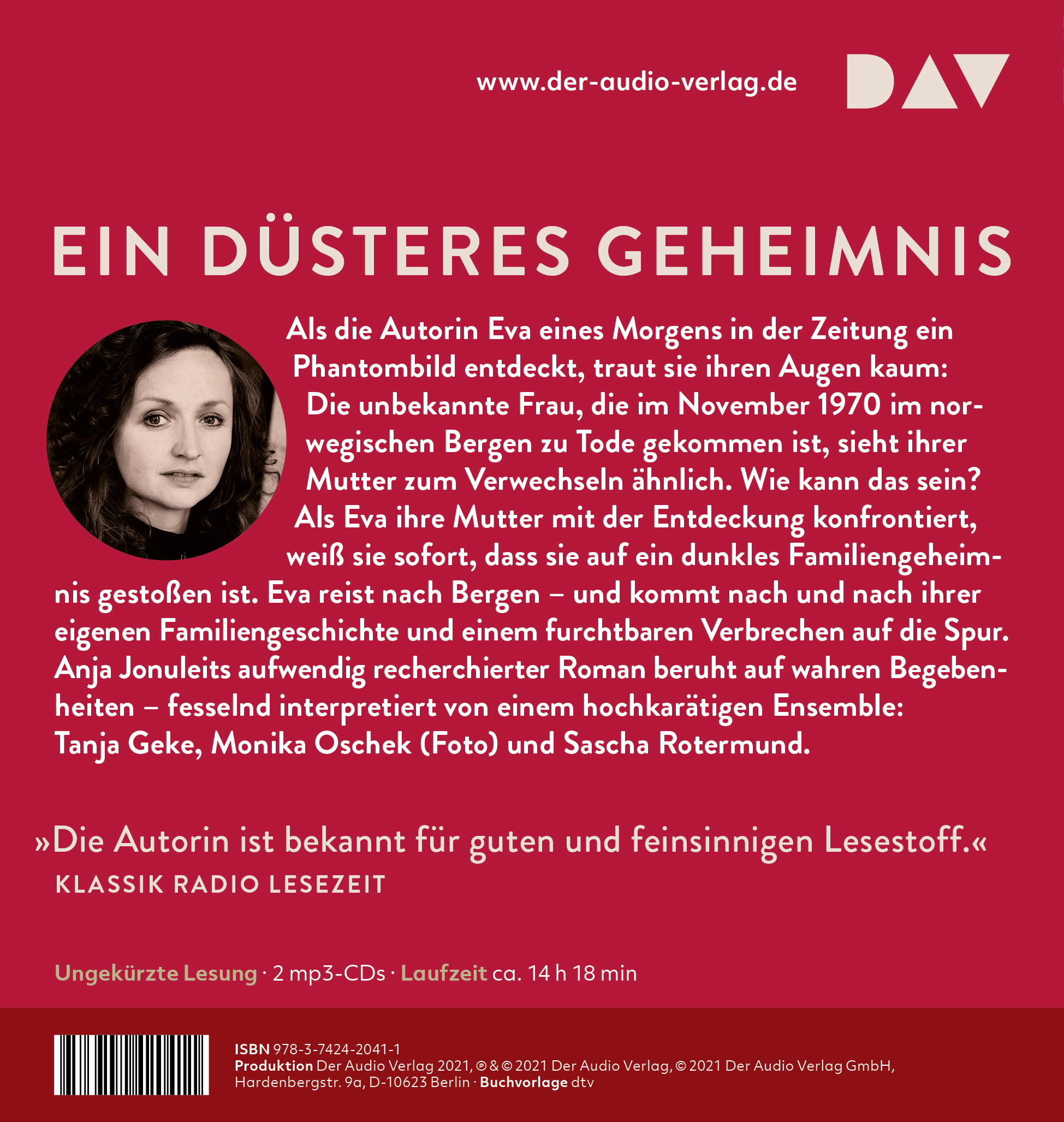 Als Eva ihre Mutter mit der Entdeckung konfrontiert, weiß sie sofort, dass sie auf ein dunkles Familiengeheimnis gestoßen ist. Eva reist nach Bergen – und kommt nach und nach ihrer eigenen Familiengeschichte und einem furchtbaren Verbrechen auf die Spur.