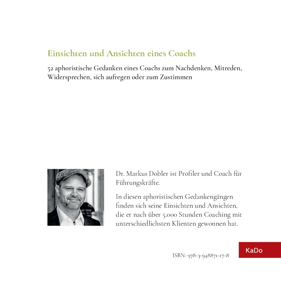 52 aphoristische Gedanken eines Coachs zum Nachdenken, Mitreden, Widersprechen, sich aufregen oder zum Zustimmen.