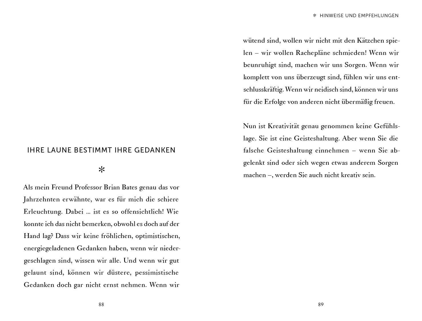 - eine konkrete Anleitung für das Entdecken und Ausüben der eigenen Kreativität