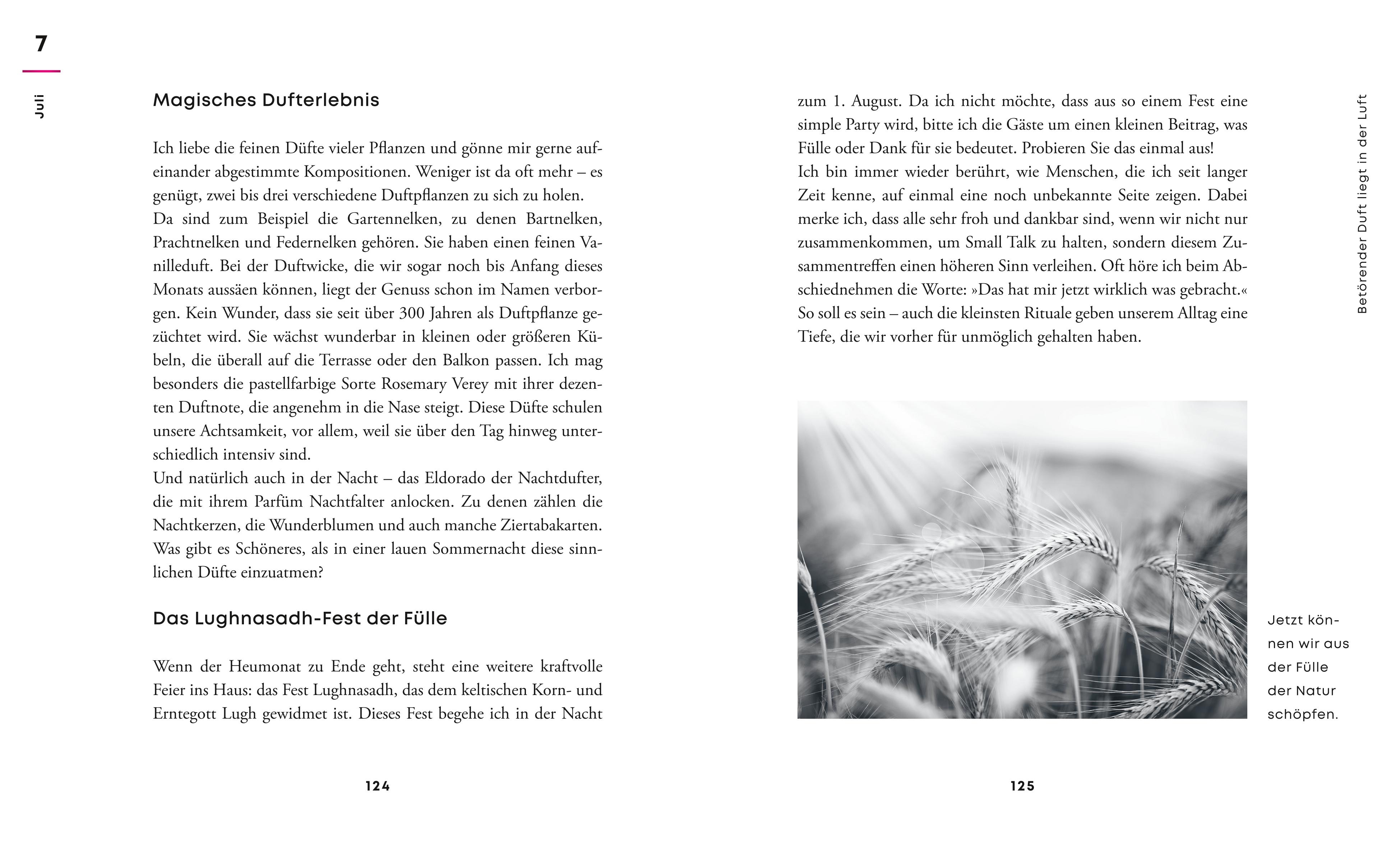 Die 12 Kapitel, aufgebaut nach dem Jahreskreis, beschreiben kraftvolle, auch in unserem Alltag leicht umsetzbare Rituale aus vielen Kulturkreisen - für Singles, Paare und Familien, für unterwegs und für zu Hause. Lassen Sie sich inspirieren von uralten Riten aus Afrika, Asien, Australien sowie Nord- und Südamerika: Lernen Sie die Macht der traditionellen Göttinnen und des Gestaltenwandlers kennen, ebenso wie die überlieferten Bräuche der deutschen Volksmagie. Diese können Sie durch Anwendung von Essenzen unterstützen: Zu diesen „Wesen aller Dinge“ gehören schöne Seifen, Bade-Zusätze, Kerzen, Talismane, Öle, Räucherwerk, Kräuter und stärkende Nahrungsmittel ebenso wie Yoga, Musik, Chanten und bewusstes Naturerleben.