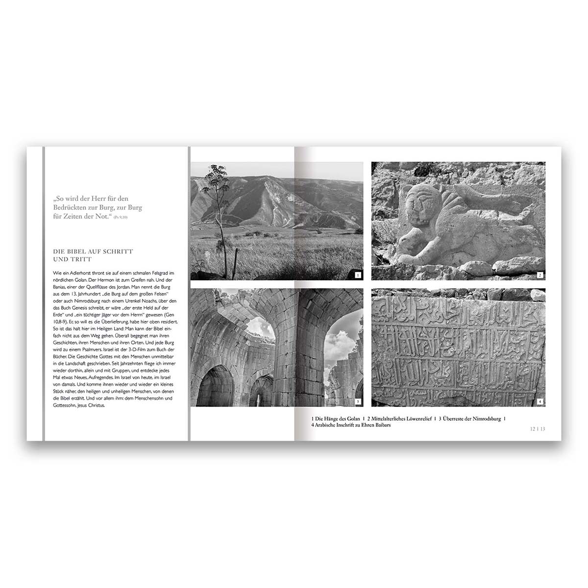Farbfotos werden von historischen Bildern, Detailaufnahmen in Schwarz-Weiß sowie seinen Bibelmeditationen ergänzt.