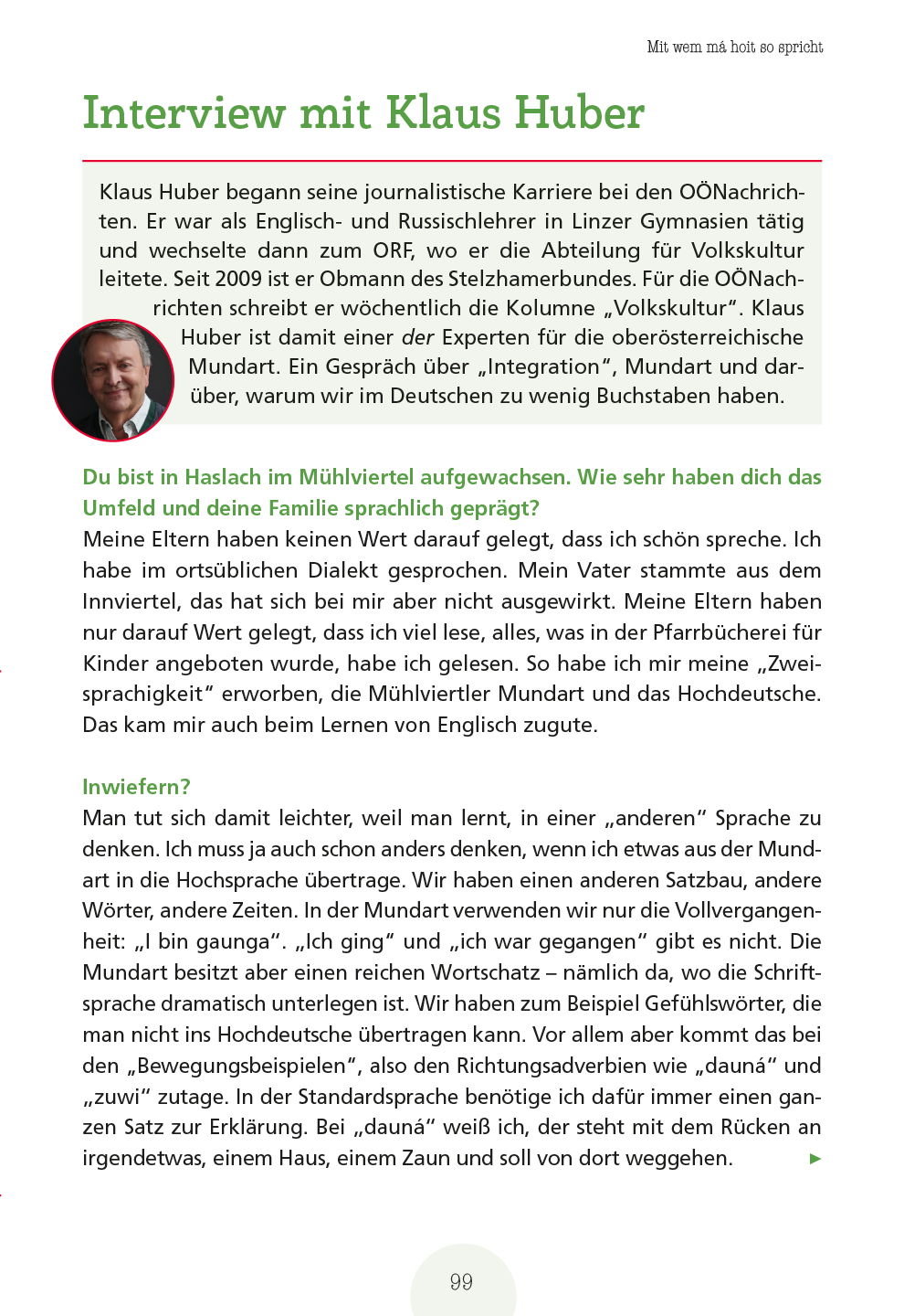 Wie gut verstehen Sie die oberösterreichische Mundart? TestenSie Ihr Wissen im Mundart-Quiz und lesen Sie interessanteBeiträge über Sprichwörter, Wegbeschreibungen, charmanteSchimpfwörter, Fußball-Begriffe u. v. m.Die beliebte Dialekt-Kolumne aus den OÖNachrichten wird zueinem Buch. Manfred Wolf sammelt darin interessante Dialekt-Beispiele, auch aus Hunderten von Mails, Briefen und Postkarten.Dieses Buch bereitet Vergnügen und lässt Erinnerungen wachwerden. Es ist ein Beitrag zum Erhalt unserer Sprachtradition,der oberösterreichischen Mundart.