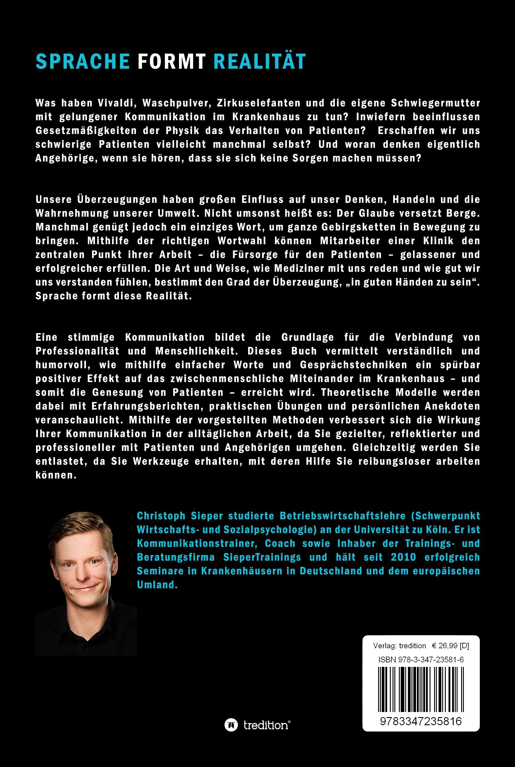 Christoph Sieper studierte Betriebswirtschaftslehre (Schwerpunkt Wirtschafts- und Sozialpsychologie) an der Universität zu Köln. Er ist Kommunikationstrainer, Coach sowie Inhaber der Trainings- und Beratungsfirma SieperTrainings und hält seit 2010 erfolgreich Seminare in Krankenhäusern in Deutschland und dem europäischen Umland.