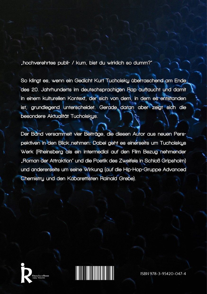 Wenn diese Vorträge nun, mit einer coronabedingten Verspätung, der Öffentlichkeit in schriftlicher Form vorgelegt werden, dann deshalb, weil es sich dabei um ernstzunehmende Beiträge zur Forschungsdiskussion handelt, die diese um Aspekte bereichern, die bisher keine oder nur wenig Beachtung gefunden haben: Wer hätte etwa gedacht, dass ein Text Tucholskys (An das Publikum) eine Rolle im Kontext des deutschsprachigen Rap der 1990er Jahre gespielt hat und dass ein anderer (Raffke) in verwandelter Form bei einem Kabarettisten der Gegenwart wie Rainald Grebe wiederkehrt?