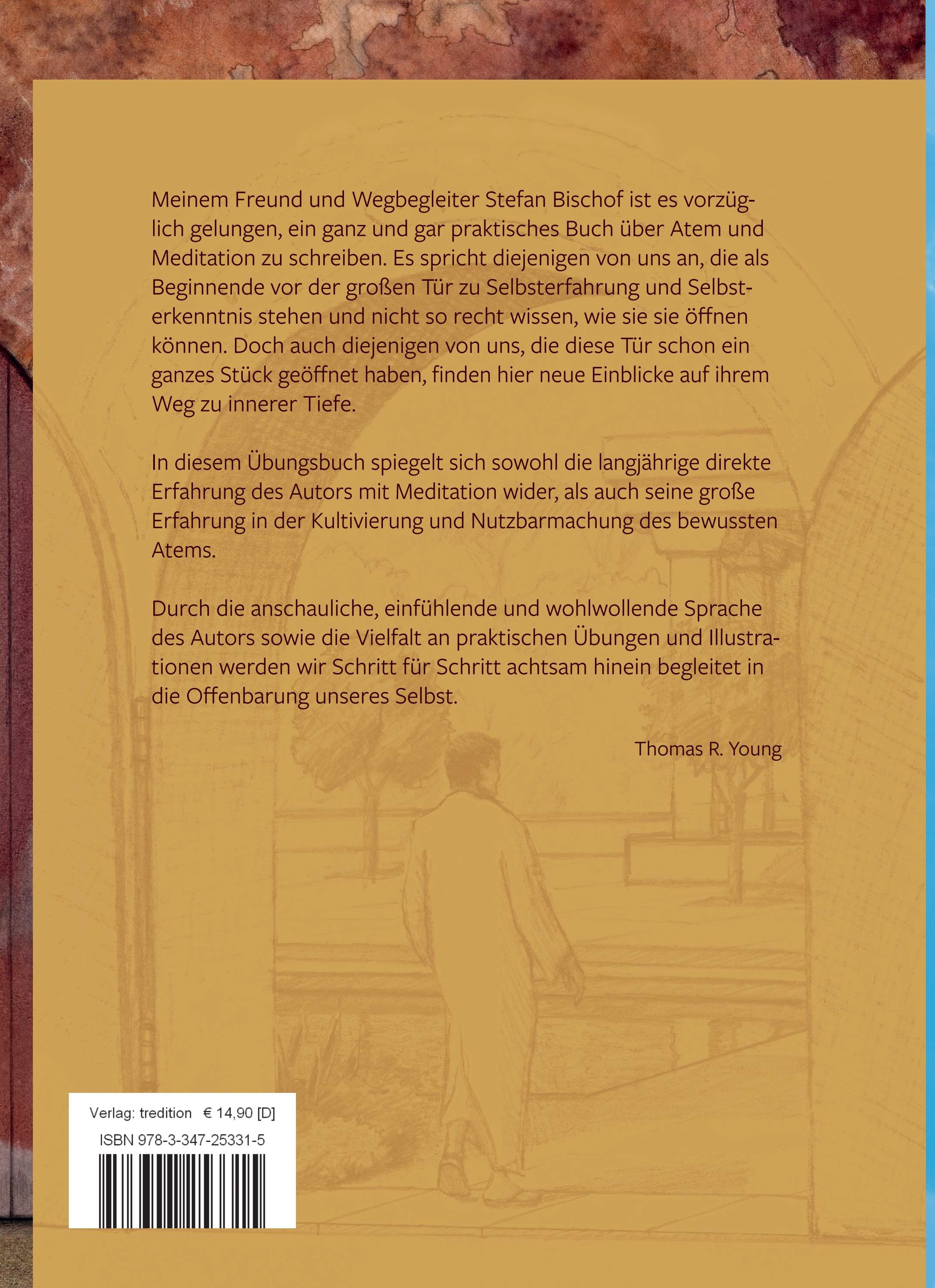 Meinem Freund und Wegbegleiter Stefan Bischof ist es vorzüglich gelungen, ein ganz und gar praktisches Buch über Atem und Meditation zu schreiben. Es spricht diejenigen von uns an, die als Beginnende vor der großen Tür zu Selbsterfahrung und Selbsterkenntnis stehen und nicht so recht wissen, wie sie sie öffnen können. Doch auch diejenigen von uns, die diese Tür schon ein ganzes Stück geöffnet haben, finden hier neue Einblicke auf ihrem Weg zu innerer Tiefe. In diesem Übungsbuch spiegelt sich sowohl die langjährige direkte Erfahrung des Autors mit Meditation wider, als auch seine große Erfahrung in der Kultivierung und Nutzbarmachung des bewussten Atems. Durch die anschauliche, einfühlende und wohlwollende Sprache des Autors sowie die Vielfalt an praktischen Übungen und Illustrationen, werden wir Schritt für Schritt achtsam hinein begleitet in die Offenbarung unseres Selbst. Thomas R. Young