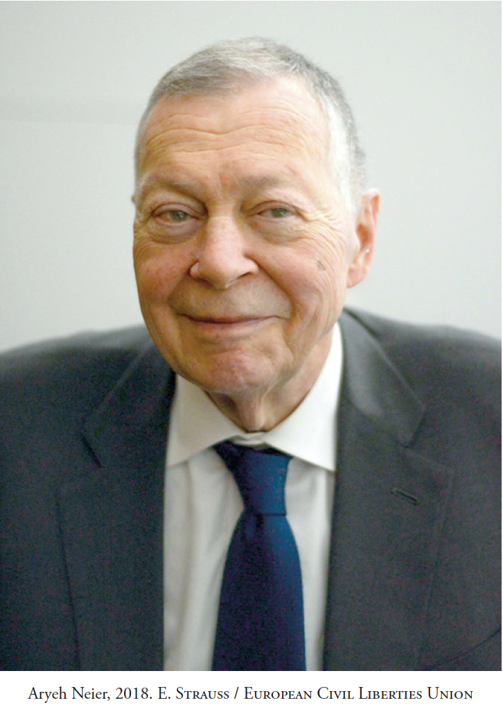 Aryeh Neier ist Verfechter der Menschenrechte und Gründer von Human Rights Watch, wo er als geschäftsführender Direktor tätig war. Er arbeitete fünfzehn Jahre bei der American Civil Liberties Union (ACLU), die letzten acht Jahre davon als geschäftsführender Direktor, und war Präsident der Open Society Foundation, in der er derzeit emeritierter Präsident ist. Er ist regelmäßiger Mitarbeiter der New York Times Book Review und Autor von sieben Büchern, darunter Taking Liberties: Four Decades in the Struggle for Rights (2003) und The International Human Rights Movement (2012).