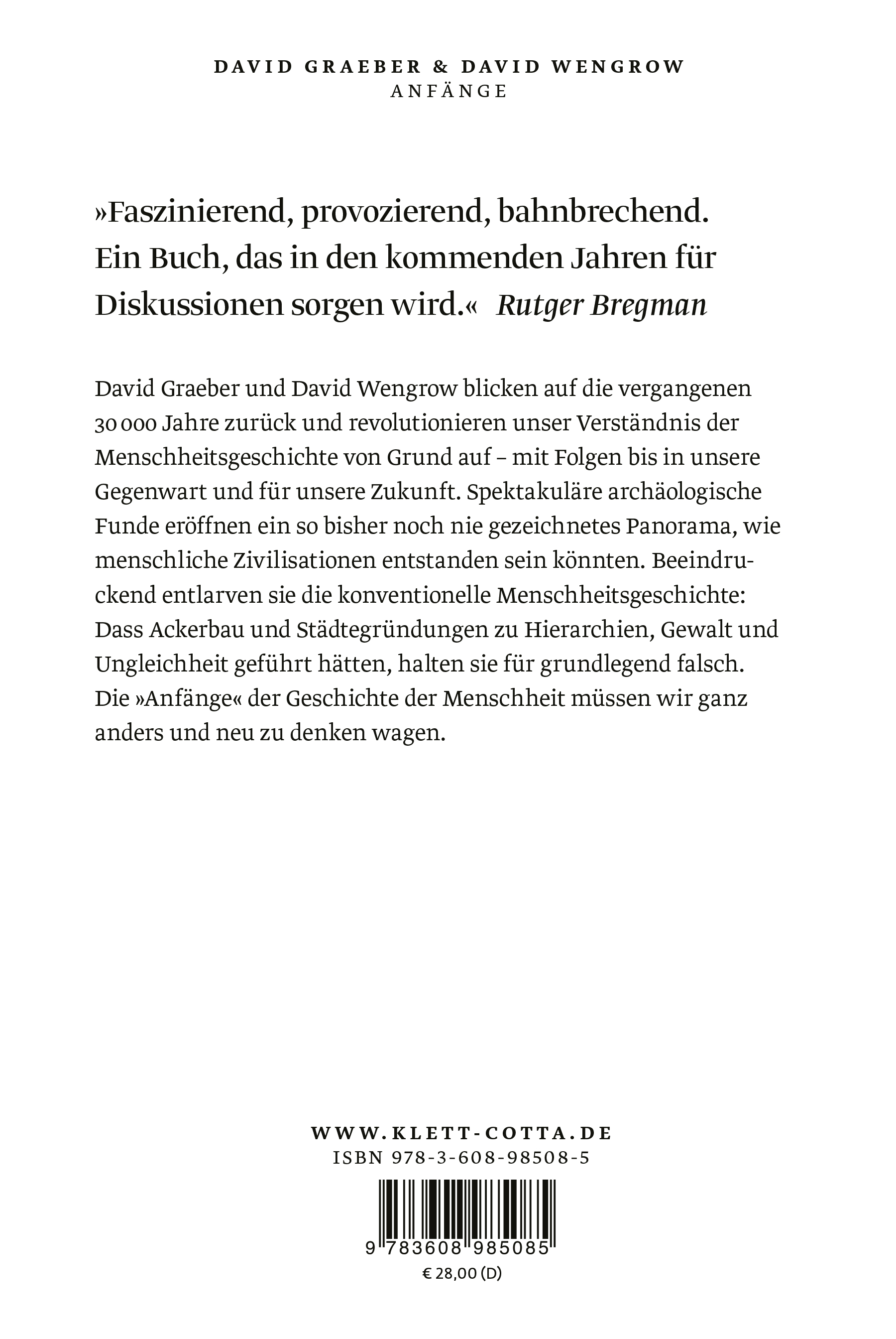 David Graeber war der wichtigste Vordenker der Occupy-Bewegung und ein weltbekannter Intellektueller. Er lebte seine Ideen von sozialer Gerechtigkeit und Befreiung, gab den Unterdrückten Hoffnung und inspirierte zahllose andere zur Nachfolge. Am 2. September 2020 starb David Graeber völlig überraschend im Alter von 59 Jahren in Venedig; drei Wochen zuvor hatten er und David Wengrow "Anfänge. Eine neue Geschichte der Menschheit" beendet. Vor mehr als zehn Jahren hatten beide Autoren begonnen an diesem Opus magnum außerhalb ihrer akademischen Verpflichtungen aufgenommen: Ein Anthropologe und ein Archäologe beleben mit dem heute vorhandenen Quellenmaterial den großen Dialog über die menschliche Geschichte wieder. Dieses Meisterwerk ist das Vermächtnis von David Graeber.