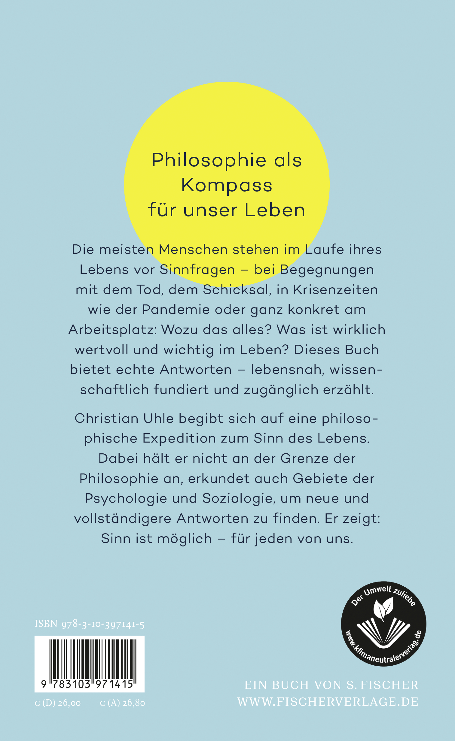 Auf ebenso kluge wie zugängliche Weise und mit vielen Beispielen entwickelt Christian Uhle neue Perspektiven auf die Frage nach dem Sinn des Lebens. Dabei bringt er erstmals aktuelle Erkenntnisse aus Philosophie, Psychologie und Soziologie zusammen und zeigt: Sinn ist möglich – für jeden von uns!