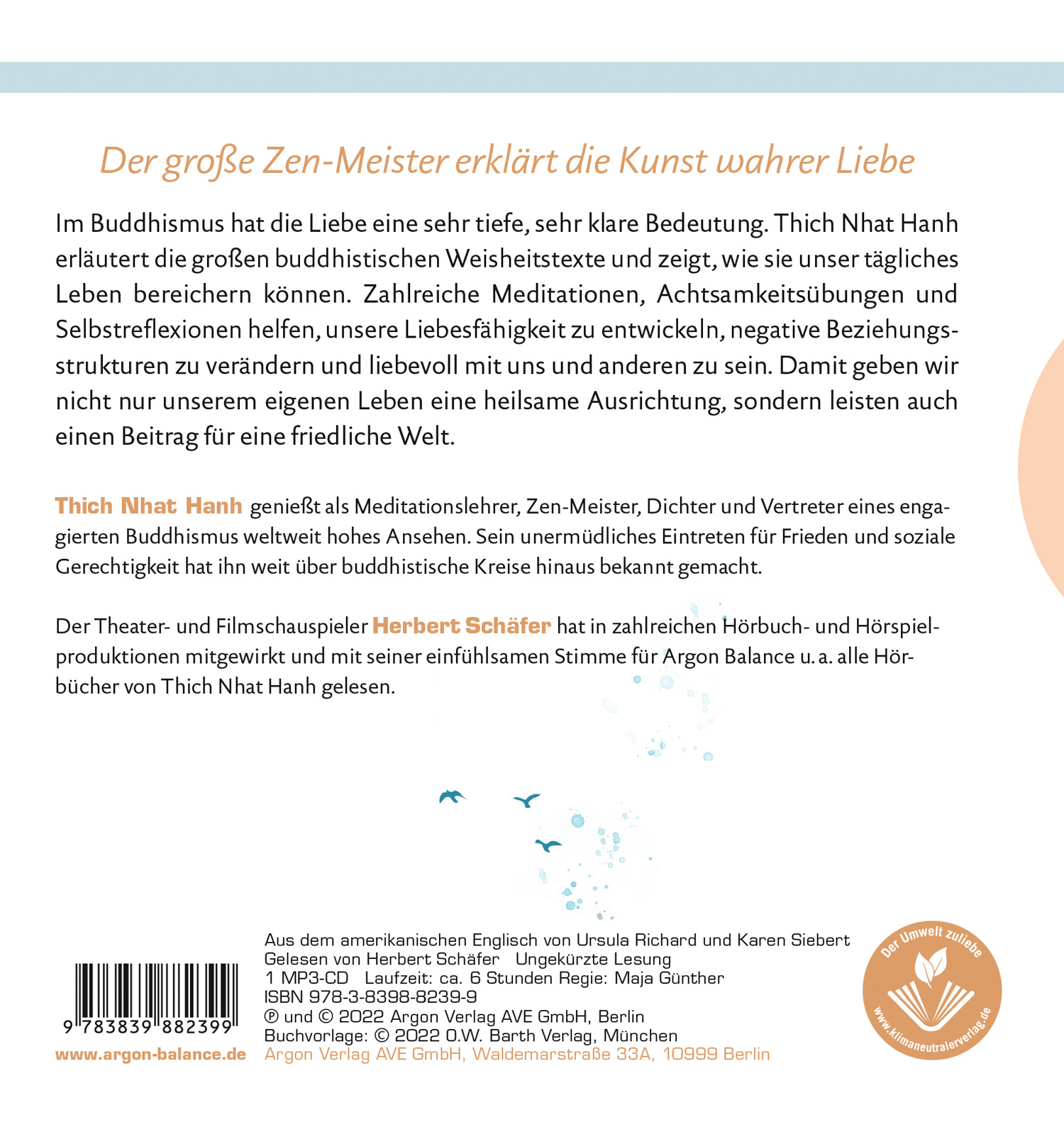 Wie können wir unsere Beziehungen liebevoller und ehrlicher gestalten und mit Konflikten konstruktiver umgehen? Thich Nhat Hanh vermittelt anhand der großen buddhistischen Weisheitstexte, wie wir die Kunst erlernen können, wirklich zu lieben. Ein zentraler Stellenwert kommt dabei der Liebe zu, die wir für uns selbst entwickeln, denn nur, wer sich selbst annehmen kann, besitzt die Fähigkeit, auch für andere da zu sein.