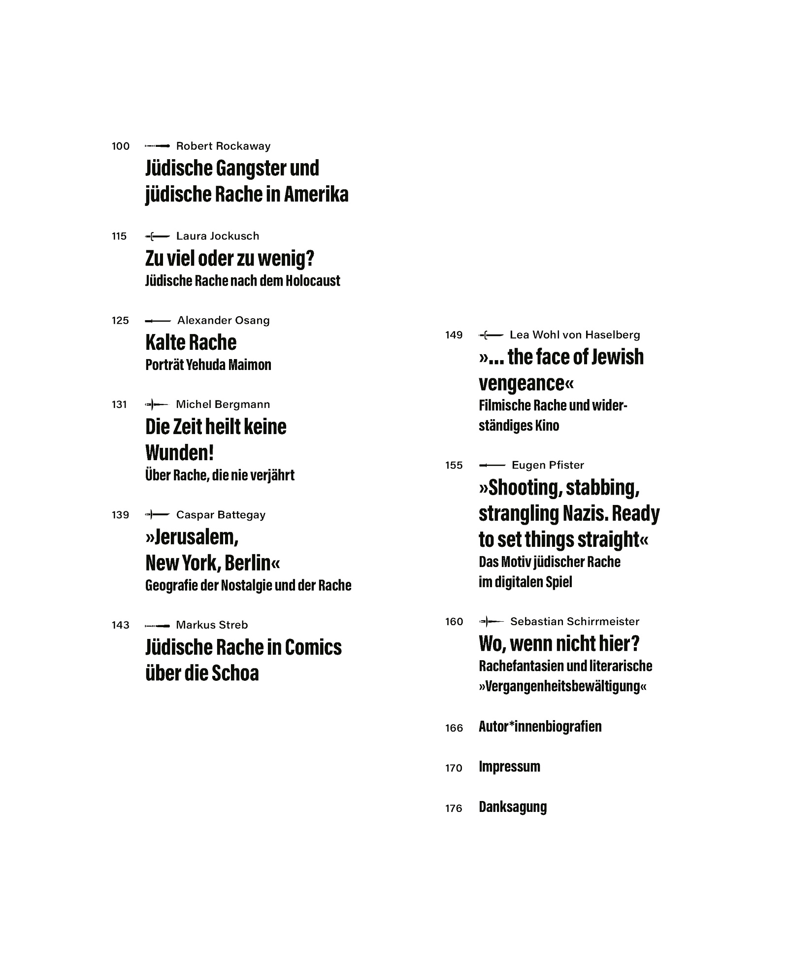 Rache ist ein schillernder Begriff - prägend für judenfeindliche Verschwörungsmythen, aber auch zu finden in biblischen Texten und Erzählungen von jüdischen Autorinnen und Autoren. Das Buch zur gleichnamigen Ausstellung am Jüdischen Museum Frankfurt geht erstmals auf den kulturgeschichtlichen Zusammenhang zwischen Rachefantasien, antisemitischen Projektionen und den jüdischen Racheakten an nationalsozialistischen Tätern ein und stellt filmische, literarische und grafische Geschichten, popkulturelle Erzählungen und religiöse Texte zu diesem ambivalenten Thema vor.