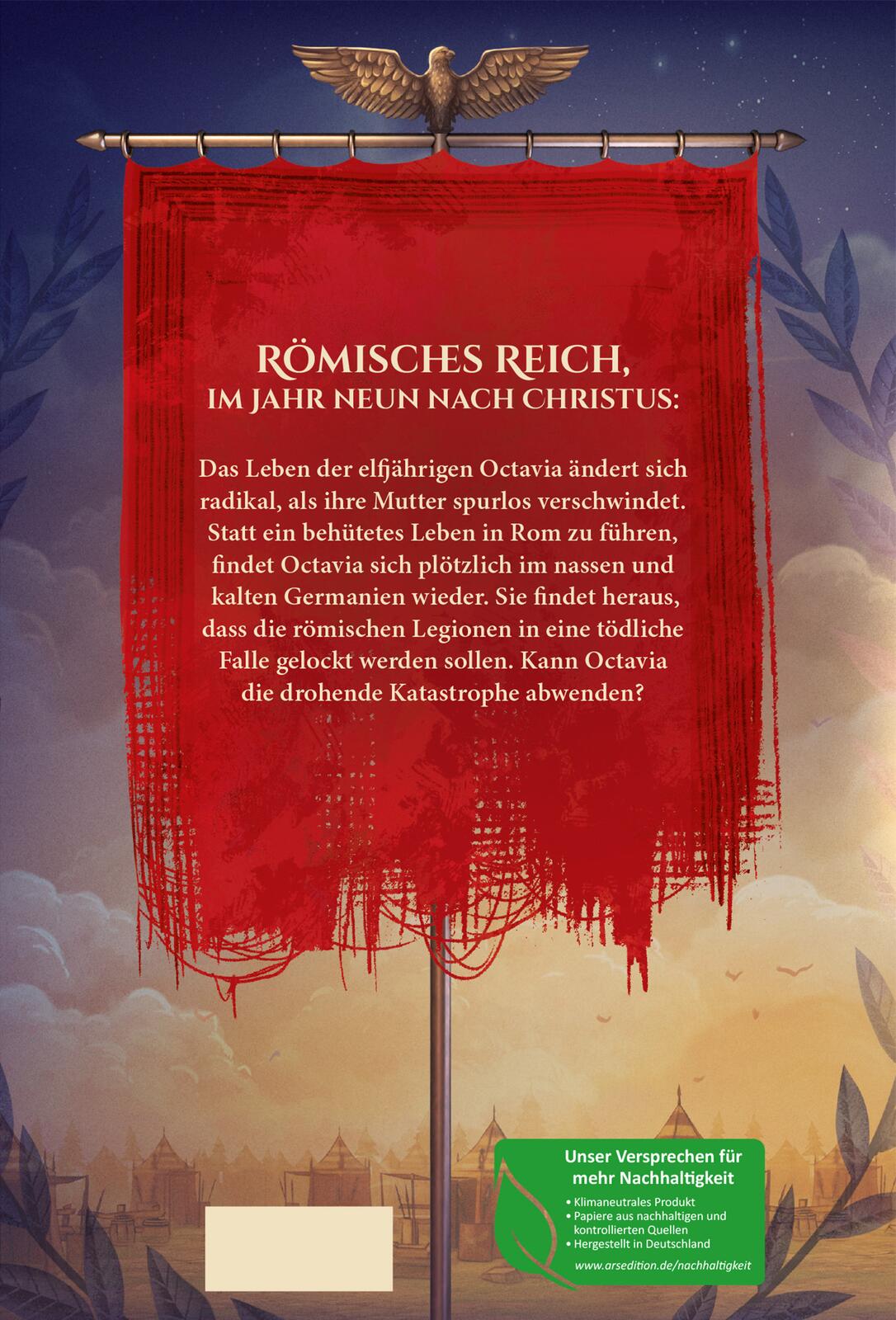 Römisches Reich, 9 nach Christus: Das Leben der elfjährigen Octavia ändert sich radikal, als ihre Mutter plötzlich spurlos verschwindet. Octavias Vater meldet sich überstürzt beim Militär und wird nach Germanien geschickt. Seine Tochter nimmt er mit. Statt das behütete Leben einer Patriziertochter in der römischen Hauptstadt zu führen, findet Octavia sich plötzlich im kalten und nassen Germanien wieder. Sie lebt jetzt in einem Lager voller Soldaten, ohne die Annehmlichkeiten der Stadt, ohne ihre Freundinnen, ohne Bäder und Kanalisation. Als sie Opfer einer Intrige und zu Unrecht angeklagt wird, bleibt ihr nur die Flucht. Unterschlupf findet sie bei den Germanen. Dort findet sie heraus, dass ein Cheruskerfürst namens Arminius die verfeindeten Germanenstämme zu einem Bündnis zusammengeschweißt hat. Die Germanen wollen die Römer in eine Falle locken und das römische Heer vernichten. Wird Octavia einen Weg finden, die drohende Katastrophe abzuwenden?