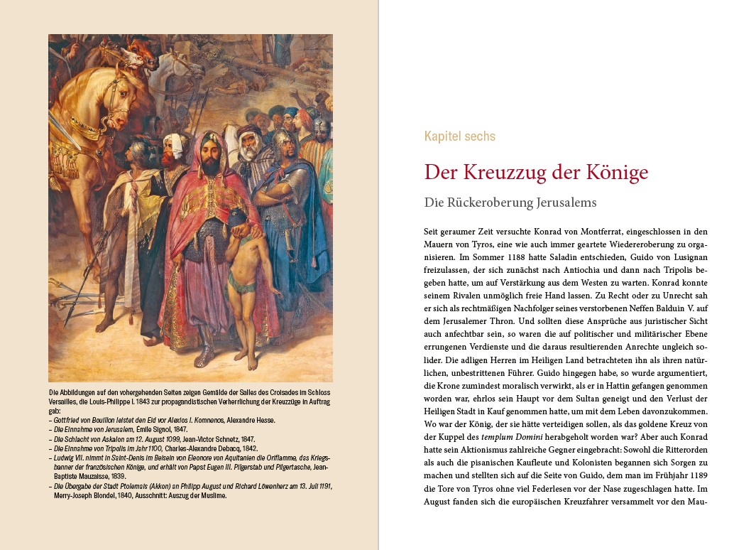 Einführung S. 9ERSTER TEILKapitel eins Die Kreuzzugsidee und ihre Wurzeln S. 20Kapitel zwei Europa und der Mittelmeerraum vor den Kreuzzügen S. 42Kapitel drei Die Eroberung des Ostens S. 65Kapitel vier Das fränkische Königreich von Jerusalem und die Fürstentümer im Heiligen Land S. 98Kapitel fünf Kurzlebige Erfolge S. 125Kapitel sechs Der Kreuzzug der Könige S. 171ZWEITER TEILKapitel sieben Der Kreuzzug im 13. Jahrhundert S. 204Kapitel acht Das zweite Königreich S. 223Kapitel neun Der Kopf der Schlange S. 243Kapitel zehn Der Verlust des Heiligen Landes S. 275Kapitel elf Das Heilige Land zurückgewinnen? S. 302Kapitel zwölf Wechselnde Ziele S. 321DRITTER TEILKapitel dreizehn Die Erfindung des Feindes S. 346Kapitel vierzehn Eine europäische Leidenschaft S. 363Kapitel fünfzehn Osmanischer Triumph S. 388Kapitel sechszehn Die Verteidigung des christlichen Europas S. 413Kapitel siebzehn Die zwei Mittelmeere S. 432Kapitel achtzehn Gegenangriff S. 452VIERTER TEILKapitel neunzehn Die Abrechnung S. 476Kapitel zwanzig Im Zeichen des Kreuzes S. 501Kapitel einundzwanzig Das Mittelmeer der Gegensätze S. 524Kapitel zweiundzwanzig Die große Zerstückelung S. 542Kapitel dreiundzwanzig Die Erinnerung an die Kreuzzüge S. 560Schluss S. 573ANHANGBelegangaben zur deutschen Übersetzung S. 580Chronologie S. 581Karte S. 582Personenregister S. 584Ortsregister S. 593Abbildungsnachweis S. 600