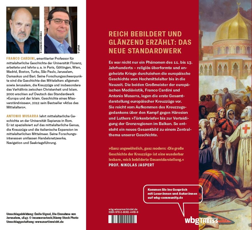 »Die 'Große Geschichte der Kreuzzüge' ist eine wunderbar lesbare, reich bebilderte Gesamtdarstellung, die gleich in zweifacher Hinsicht eine ungewöhnliche, reizvolle Perspektive auf die Kreuzzüge eröffnet. Zum einen ist ihre zeitliche Spannweite außergewöhnlich: Sie reicht von den Anfängen dieser Bewegung vor über 1000 Jahren bis zu der mit religiösen Argumenten legitimierten Gewalt unserer Zeit. Die meisten Darstellungen der Kreuzzüge enden mit dem Untergang der sogenannten 'Kreuzfahrerstaaten' Ende des 13. Jahrhunderts, oder bestenfalls mit den Kämpfen christlicher Mächte gegen die Osmanen im 15. Jahrhundert. Hier wird nicht nur die spätere, nachmittelalterliche Geschichte religiös konnotierter militärischer Konflikte erzählt, sondern auch die Abwandlung der Kreuzesideologie in West und Ost. Zum anderen ist der Blickwinkel auf diese lange Geschichte ein ganz und gar mediterraner - das Mittelmeer steht im Zentrum dieses Buches, ganz wie man es von einem Werk zweier so bedeutender italienischer Mittelalterhistoriker erwarten darf! Endlich eine Darstellung, welche die Bedeutung der italienischen Seestädte an kriegerischen Auseinandersetzungen, aber auch am friedlichen Austausch mit der islamischen Welt gebührend herausstellt.« Prof. Dr. Nikolas Jaspert, Universität Heidelberg »Ein großartiger Band, reich an Illustrationen und mit einer hervorragend erzählten Darstellung, die bis in die heutige Zeit reicht.« La Lettura »...das Standardwerk zu einem der Zentralthemen der Geschichte!« Medien-Info »Ihr Ziel, damit Missverständnissen vorzubeugen ... verdient höchste Anerkennung. Umso mehr ist zu hoffen, dass ihr Buch eine breite Rezeption erfährt.« DAMALS »... ein zeitlich wie räumlich umfassendes Gesamtbild dieses zentralen Geschichtsthemas ...« Militär & Geschichte