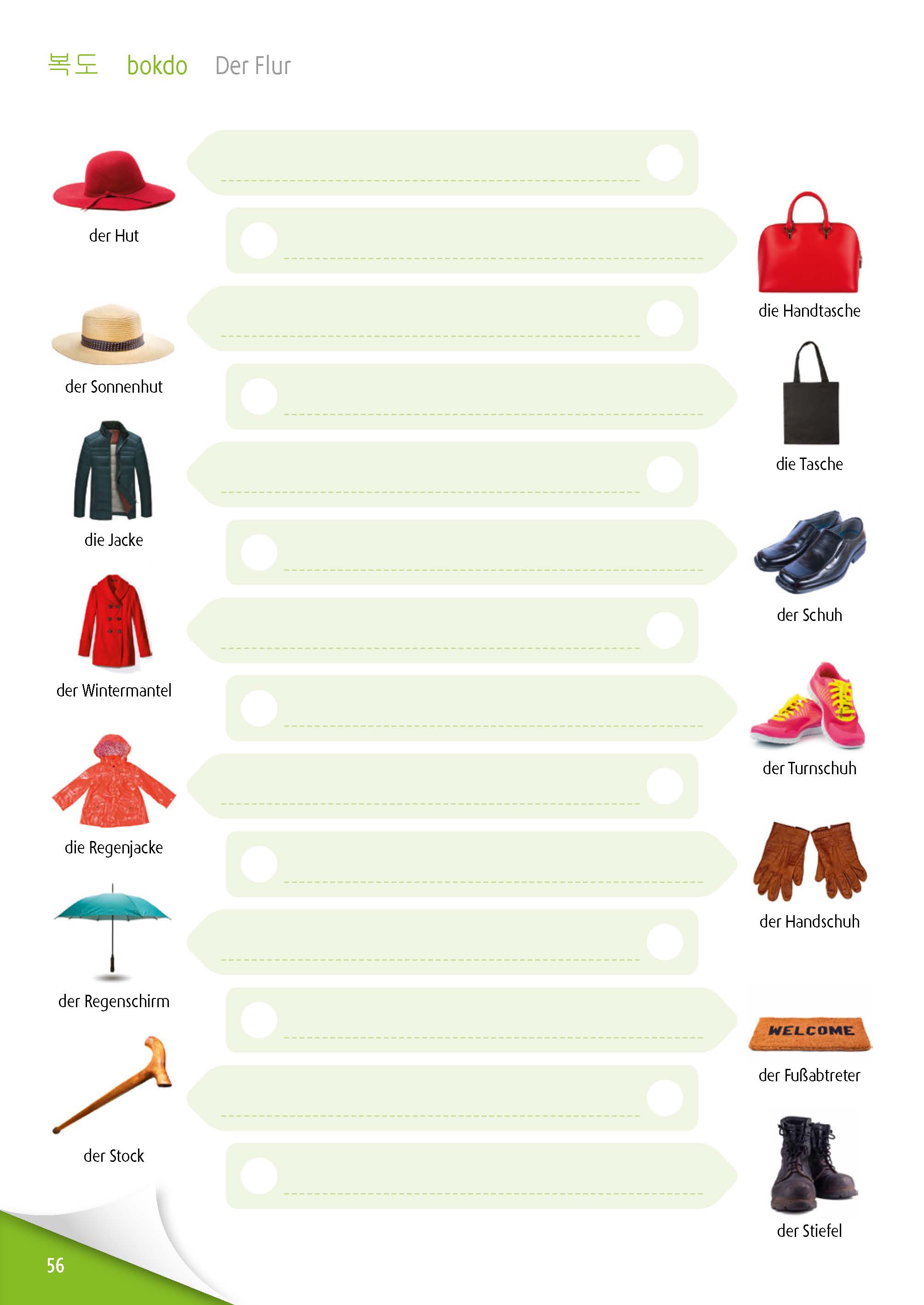 - Alles gelernt? Dieses Buch wird zum persöhnlichen Koreanisch-Vokabelheft mit Abbildungen zu jedem Wort und einer Schreiblinie zum selber Testen