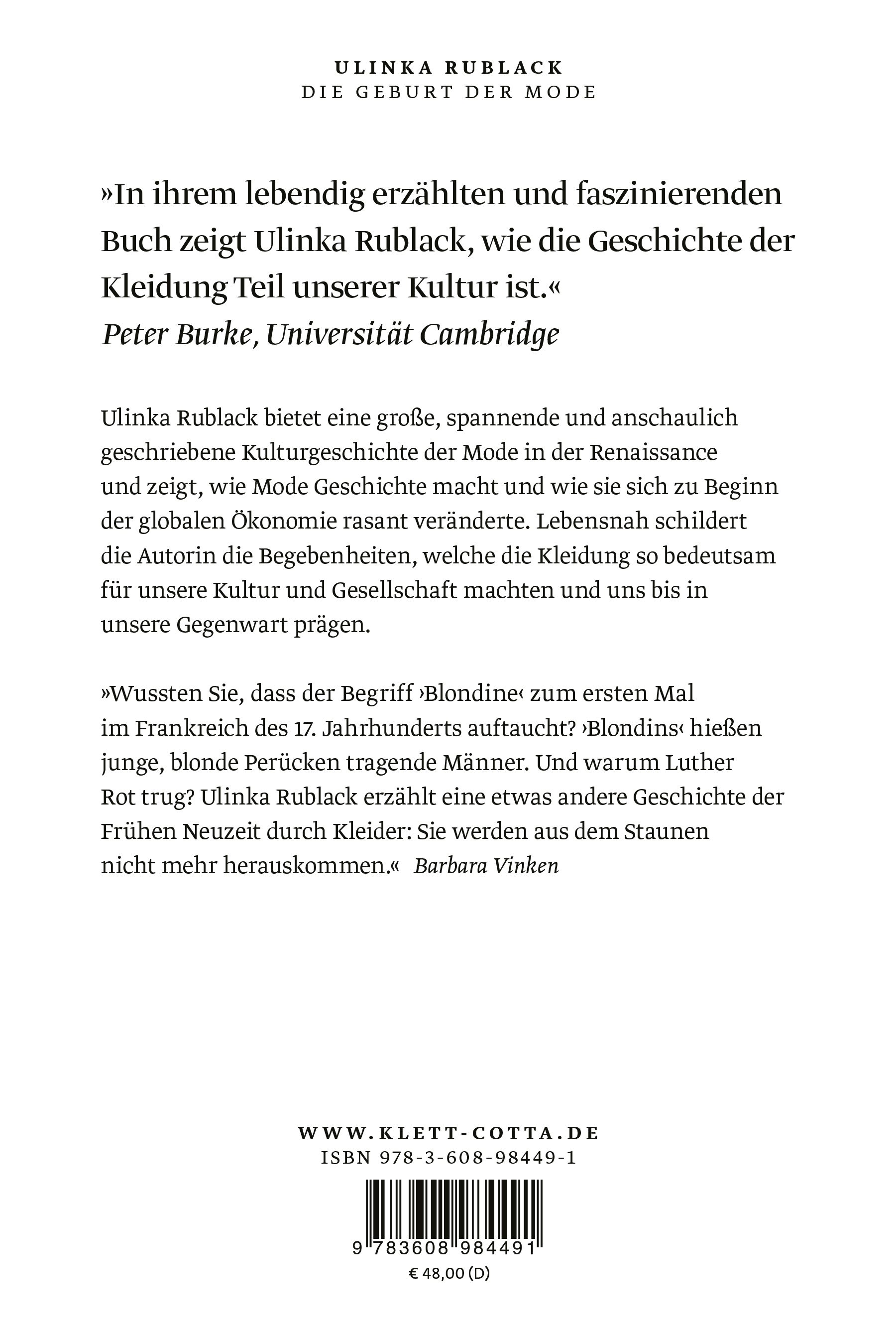 »In ihrem lebendig erzählten und faszinierenden Buch zeigt Ulinka Rublack, wie die Geschichte der Kleidung Teil unserer Kultur ist.« Peter Burke, Universität Cambridge